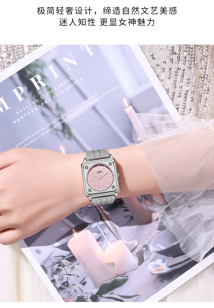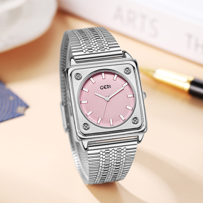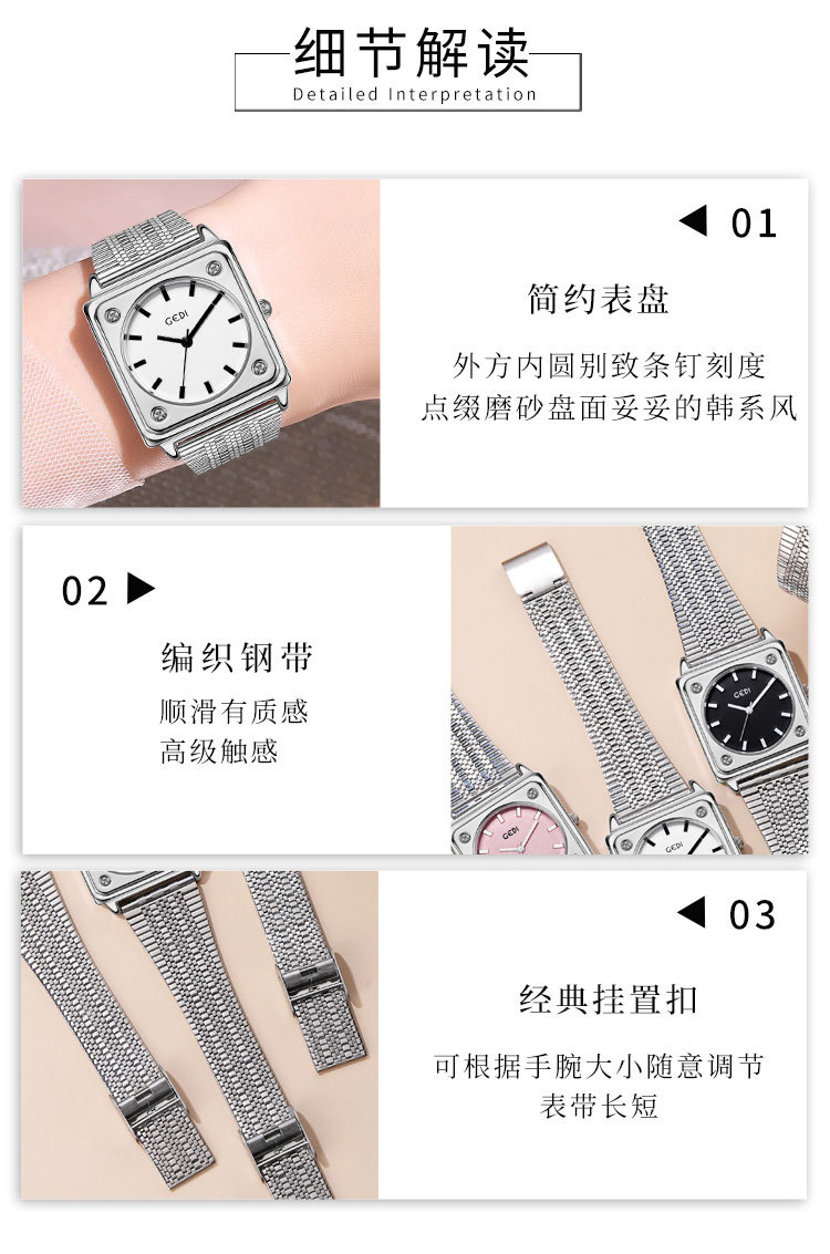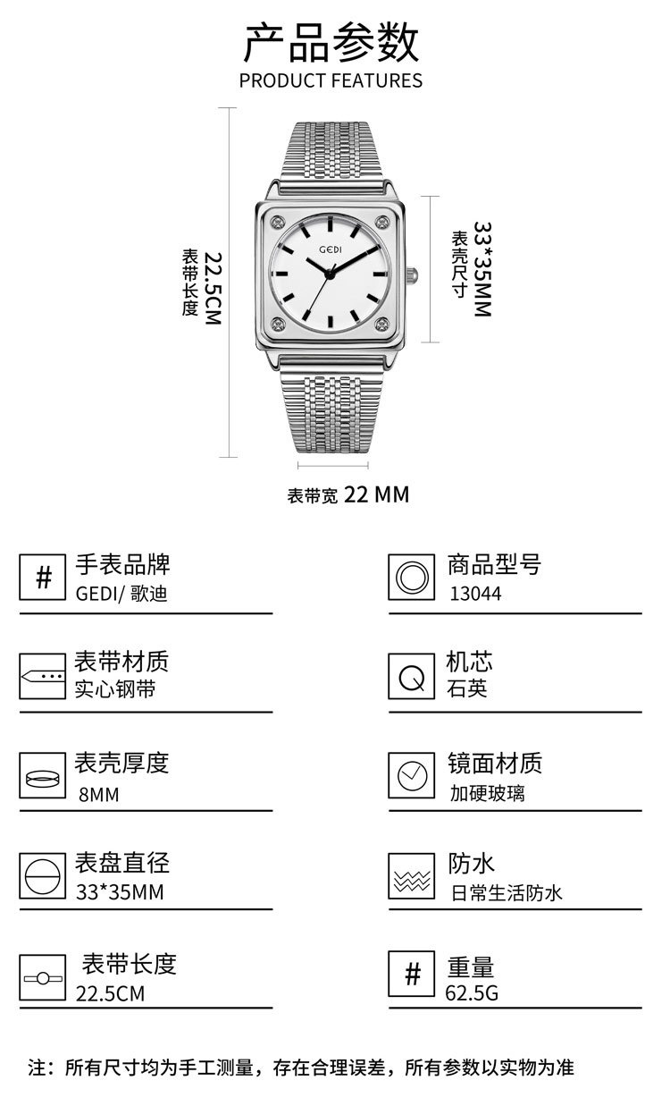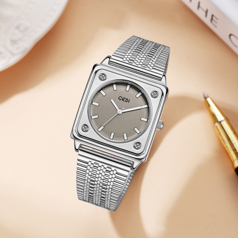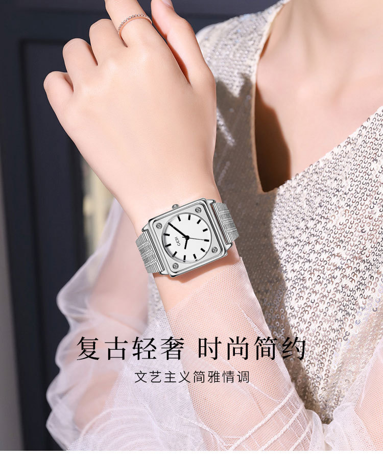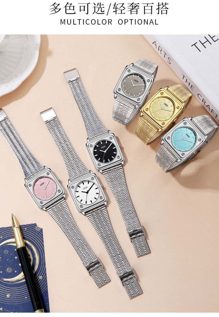 歌迪小众高级感女表简约高颜值钢带表女士方盘防水石英手表