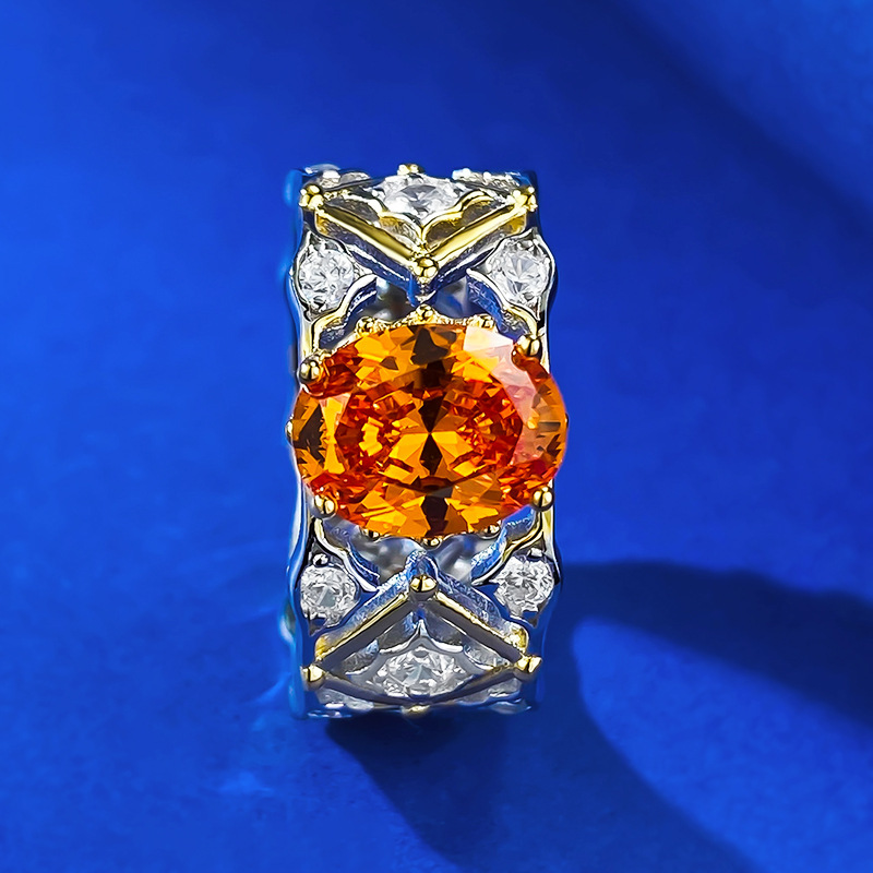 慕景珠宝2024新款欧美意大利工艺宫廷复古7*9mm芬达橙戒指名媛风