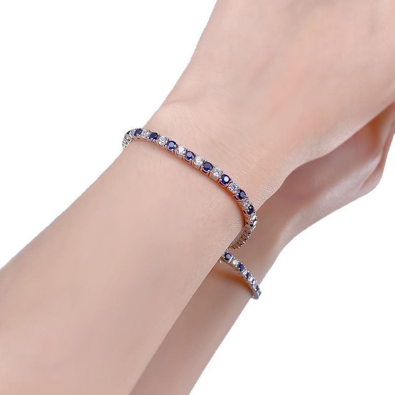 慕景珠宝 2025新款S925纯银手链豪镶皇家蓝满钻手链时尚铭媛ins风