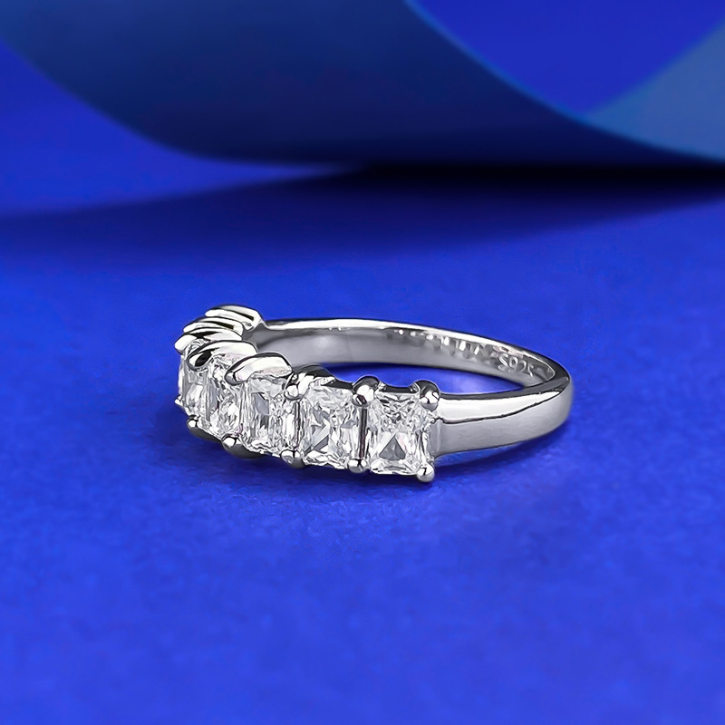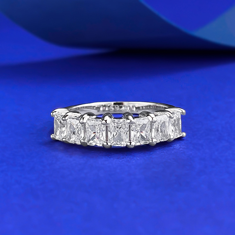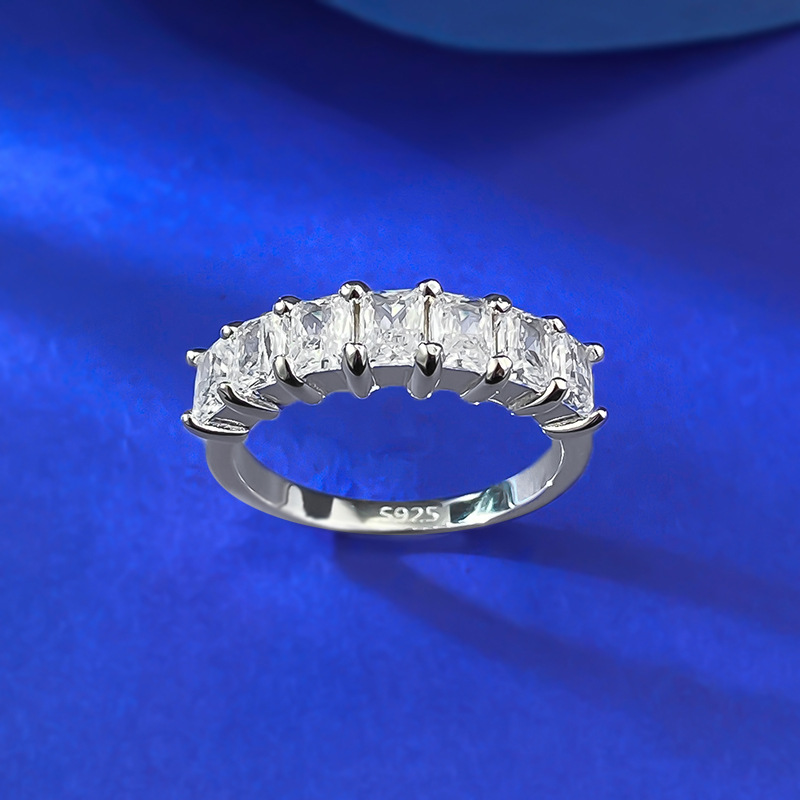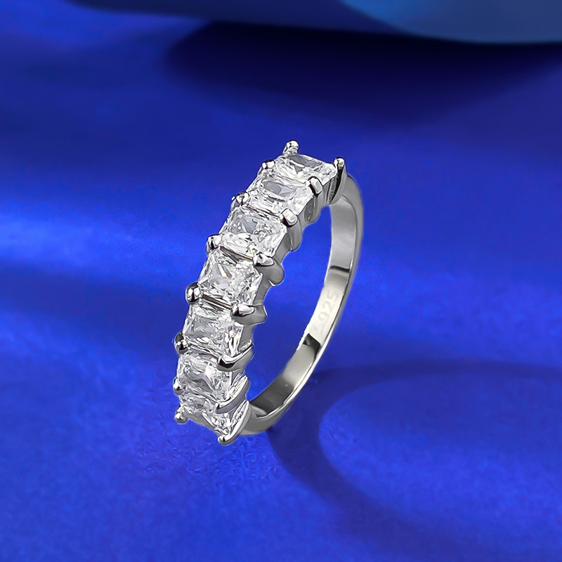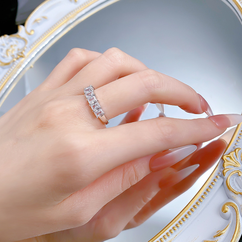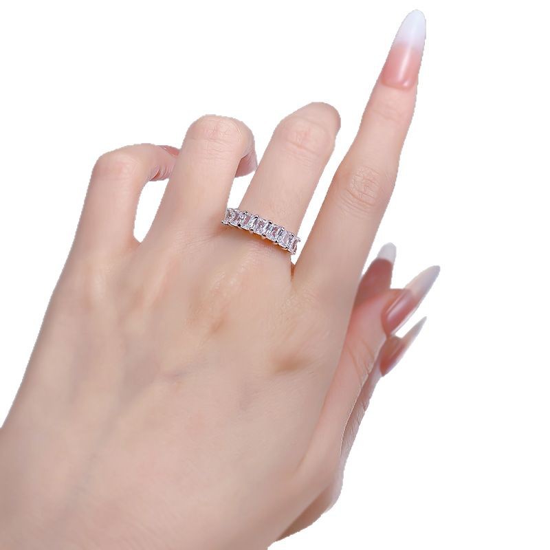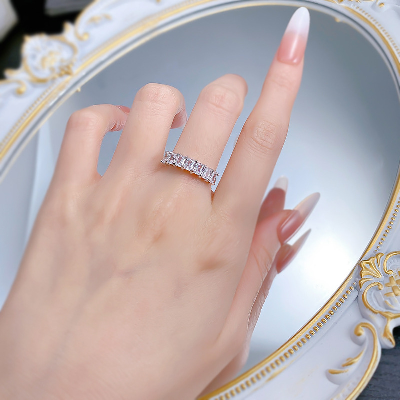 慕景珠宝S925银新款长方排钻戒指女简约个性光面叠戴戒指欧美款