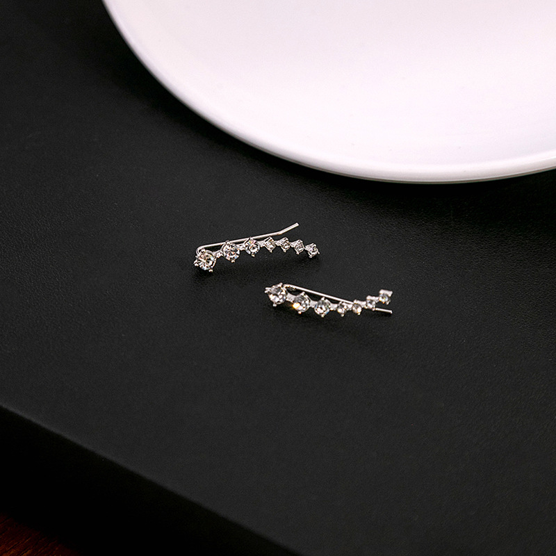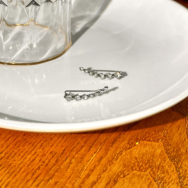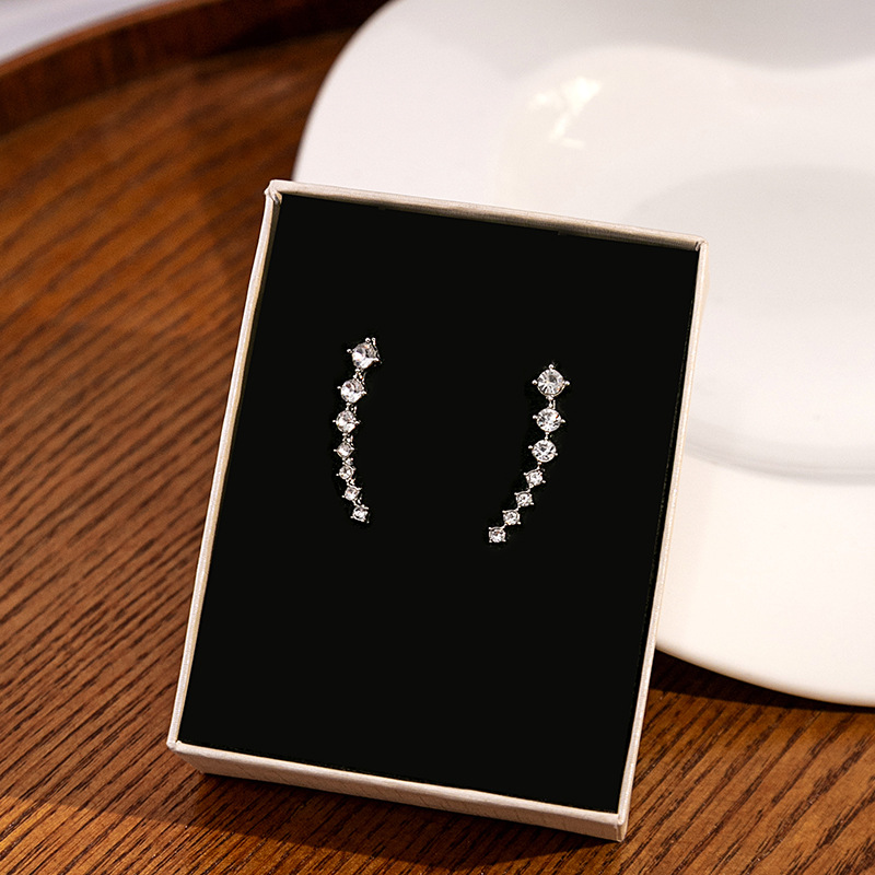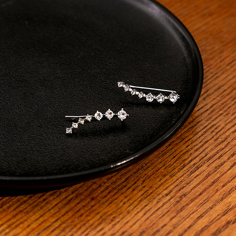 简约百搭一字排钻耳环 轻奢小众锆石弧形耳钩冷淡风长款微镶耳饰