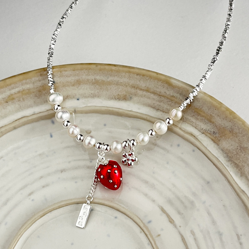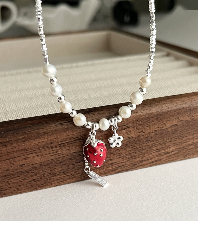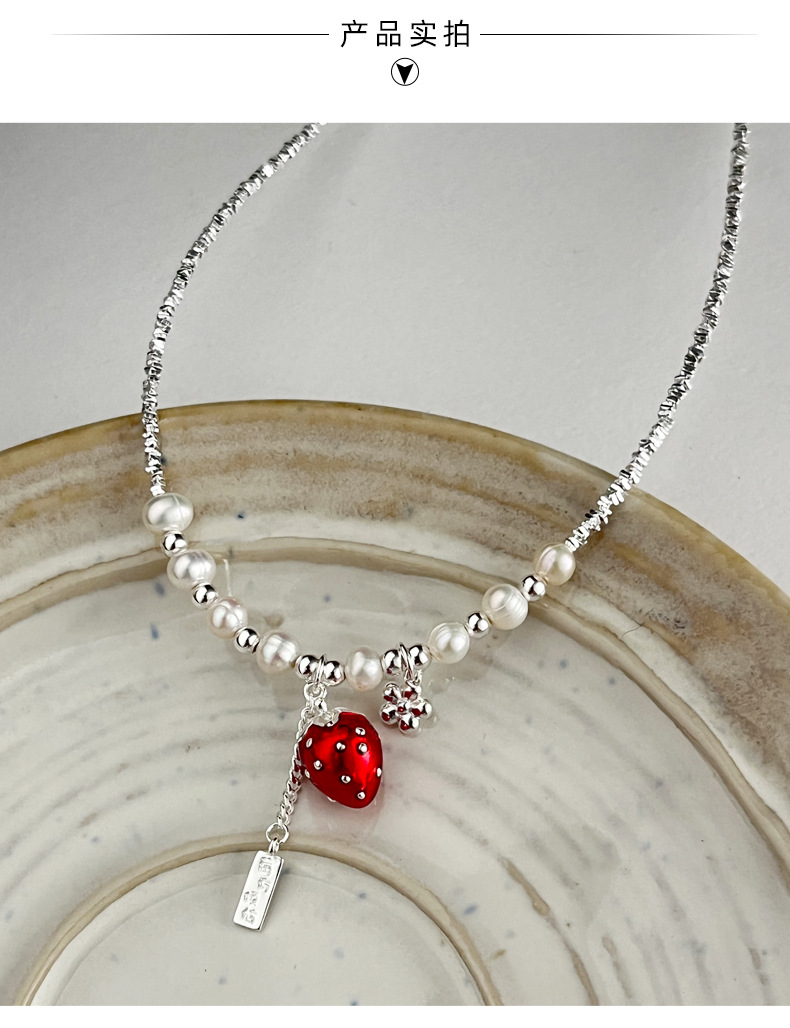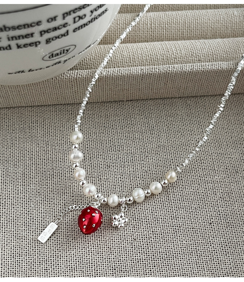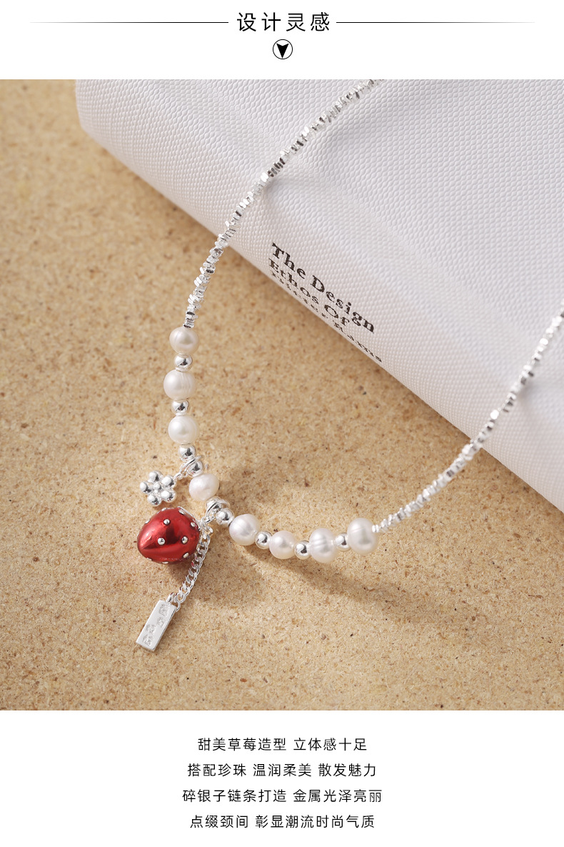 925纯银莓有烦恼草莓花朵珍珠碎银子项链女时尚百搭锁骨链0956