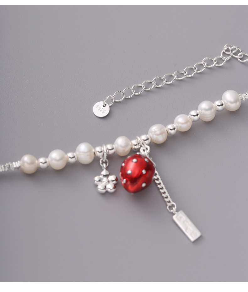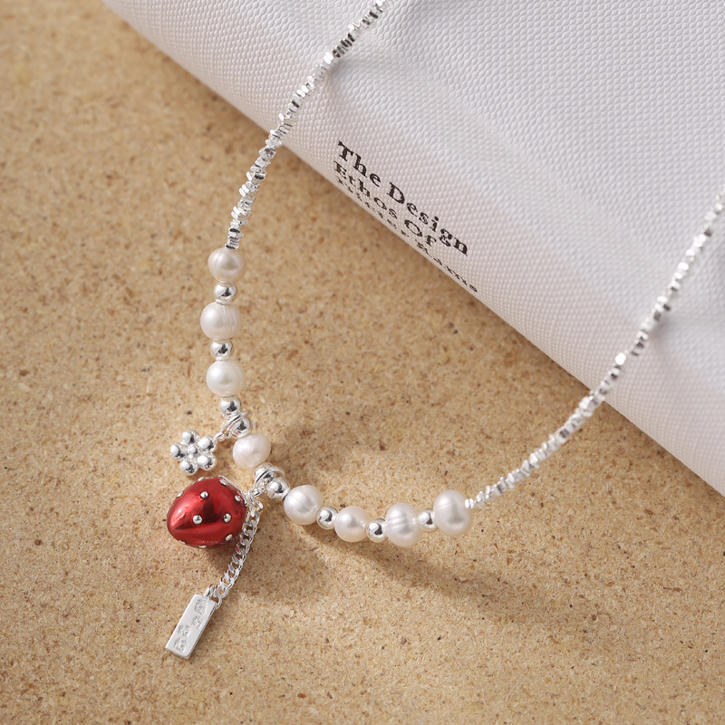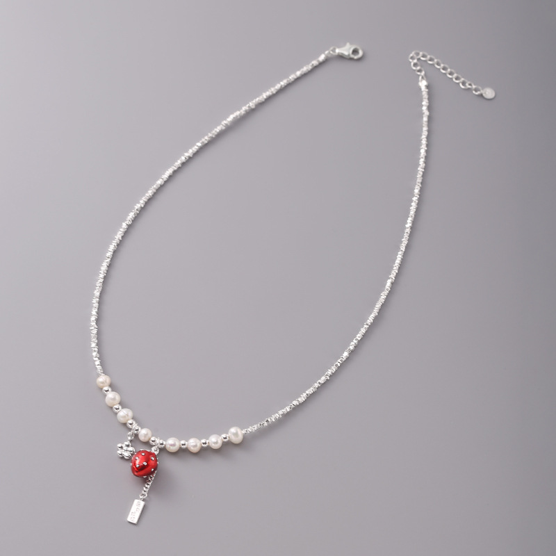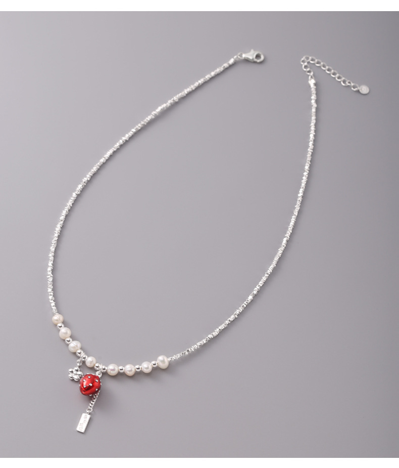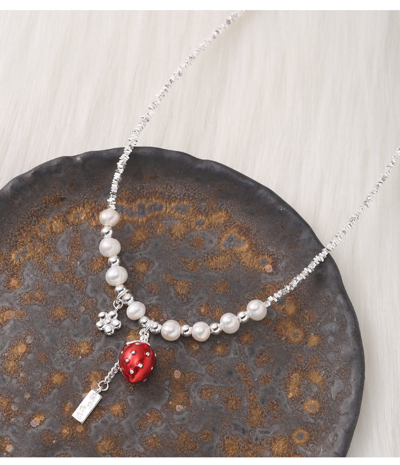 925纯银莓有烦恼草莓花朵珍珠碎银子项链女时尚百搭锁骨链0956