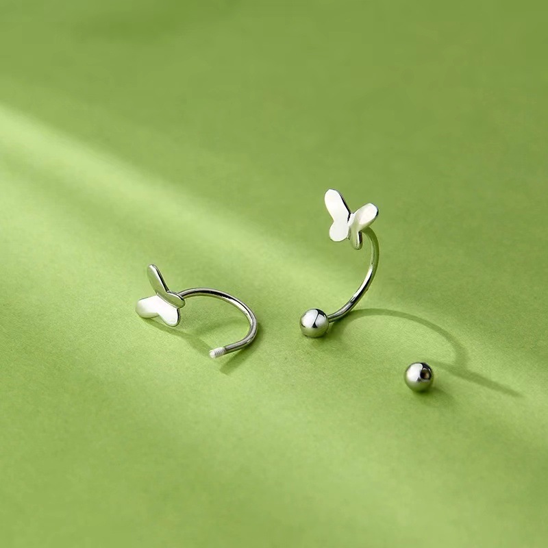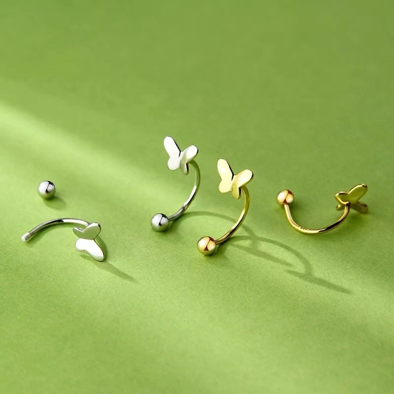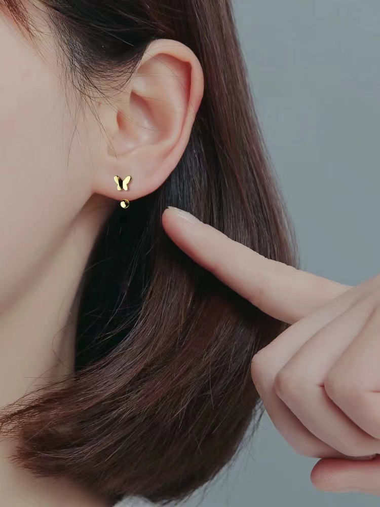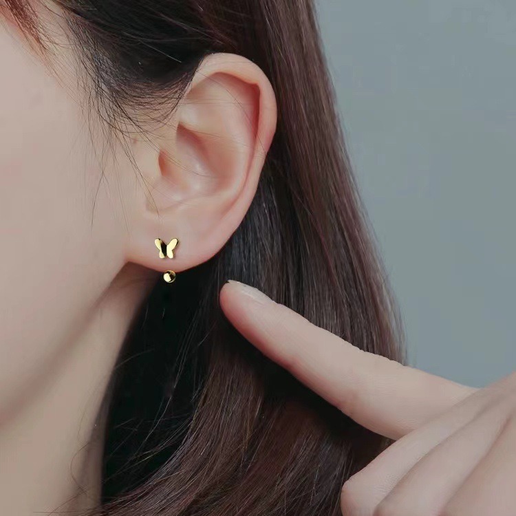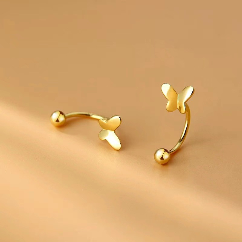 新款!蝴蝶拧螺丝耳钉女潮夏简约文艺气质小众耳环睡觉不用摘