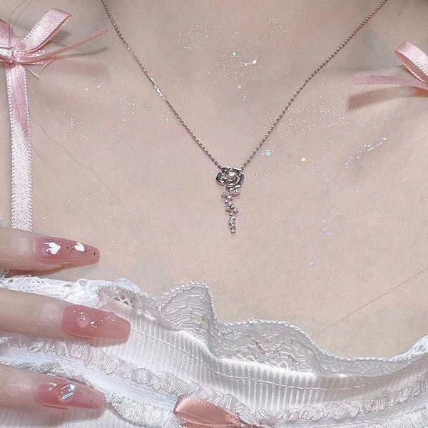 韩版风小玫瑰星云仙女项链 超温柔超仙镶钻星星锁骨银链网红小红