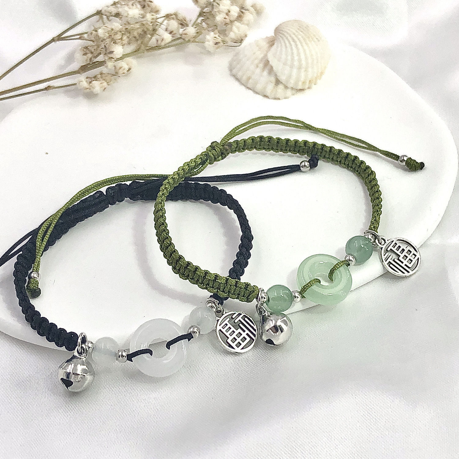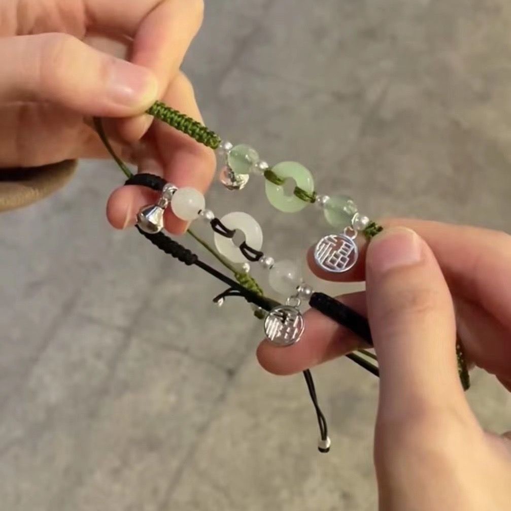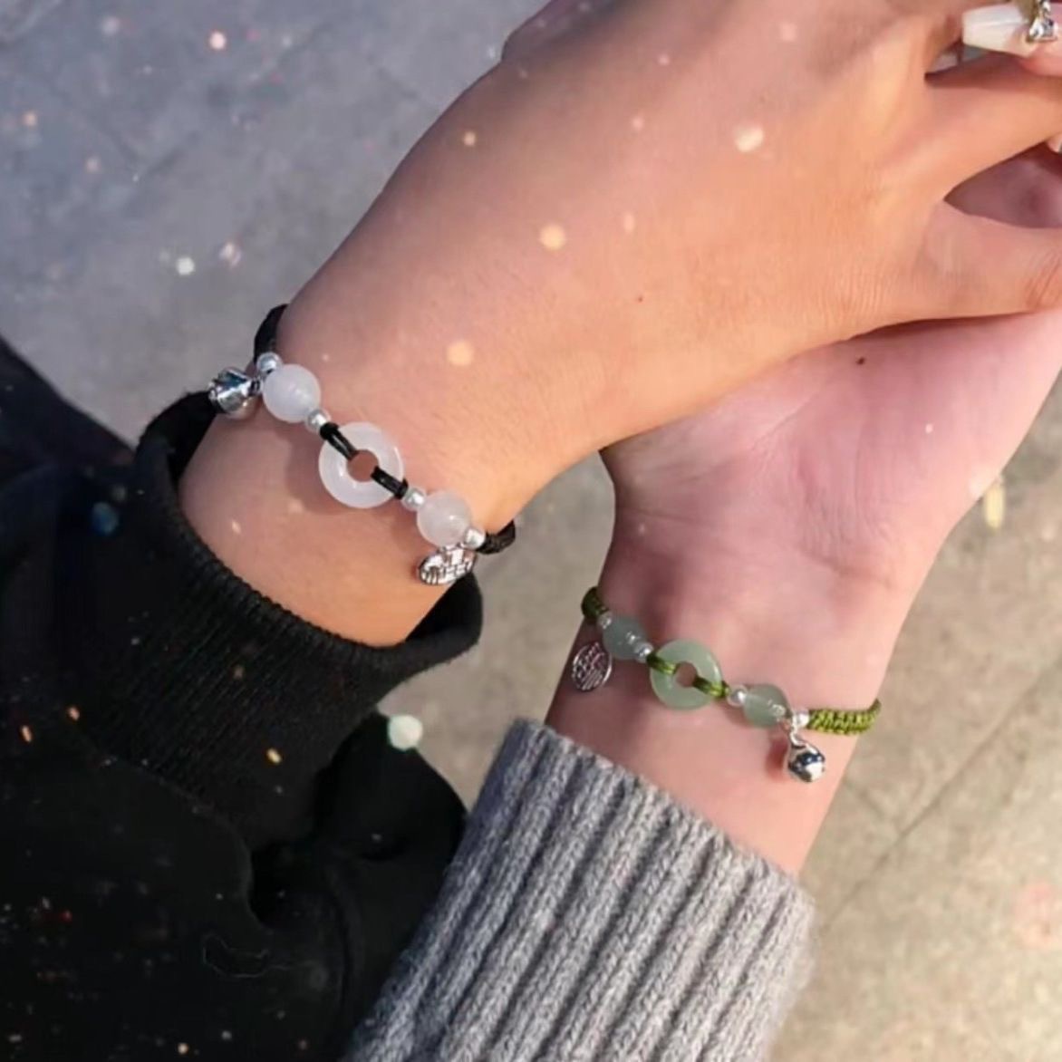 福牌铃铛平安扣手链女编织手绳闺蜜情侣款送学生女友礼物-S370
