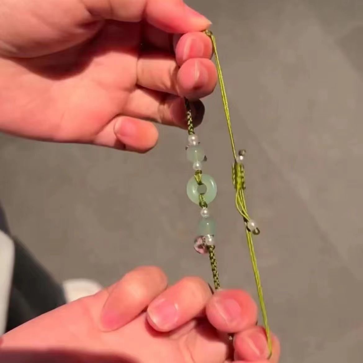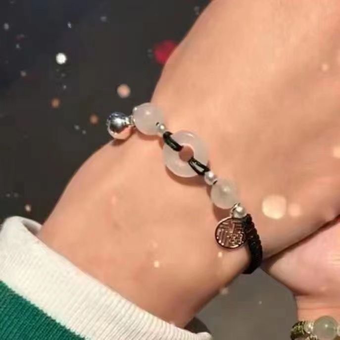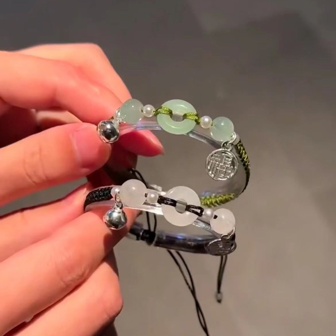 福牌铃铛平安扣手链女编织手绳闺蜜情侣款送学生女友礼物-S370