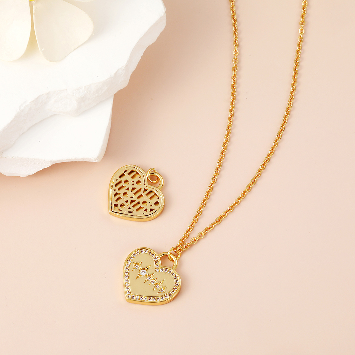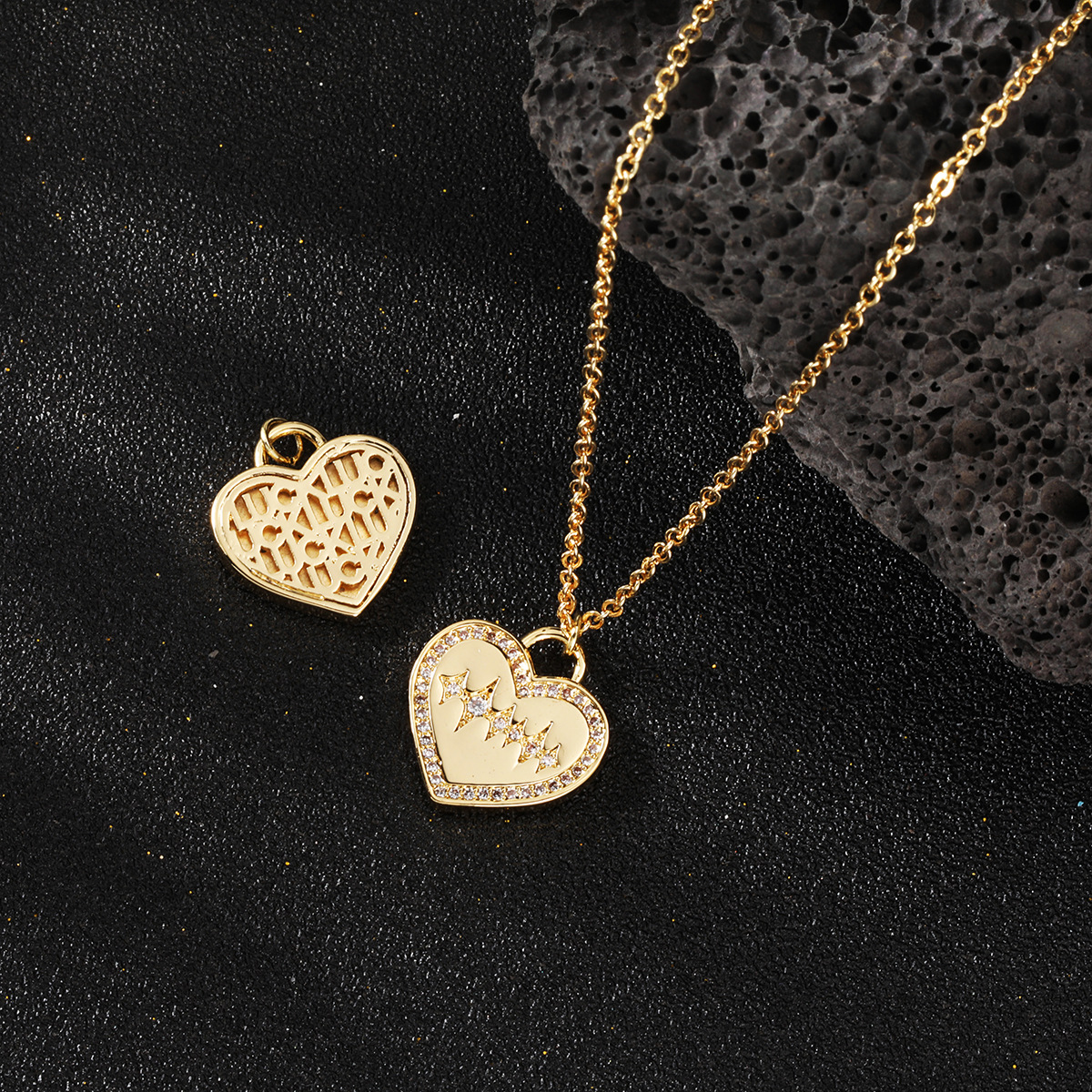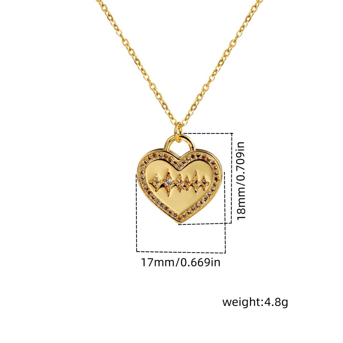 跨境热销百搭高级感轻奢心形心电图镶钻吊坠链条时尚个性小众项链