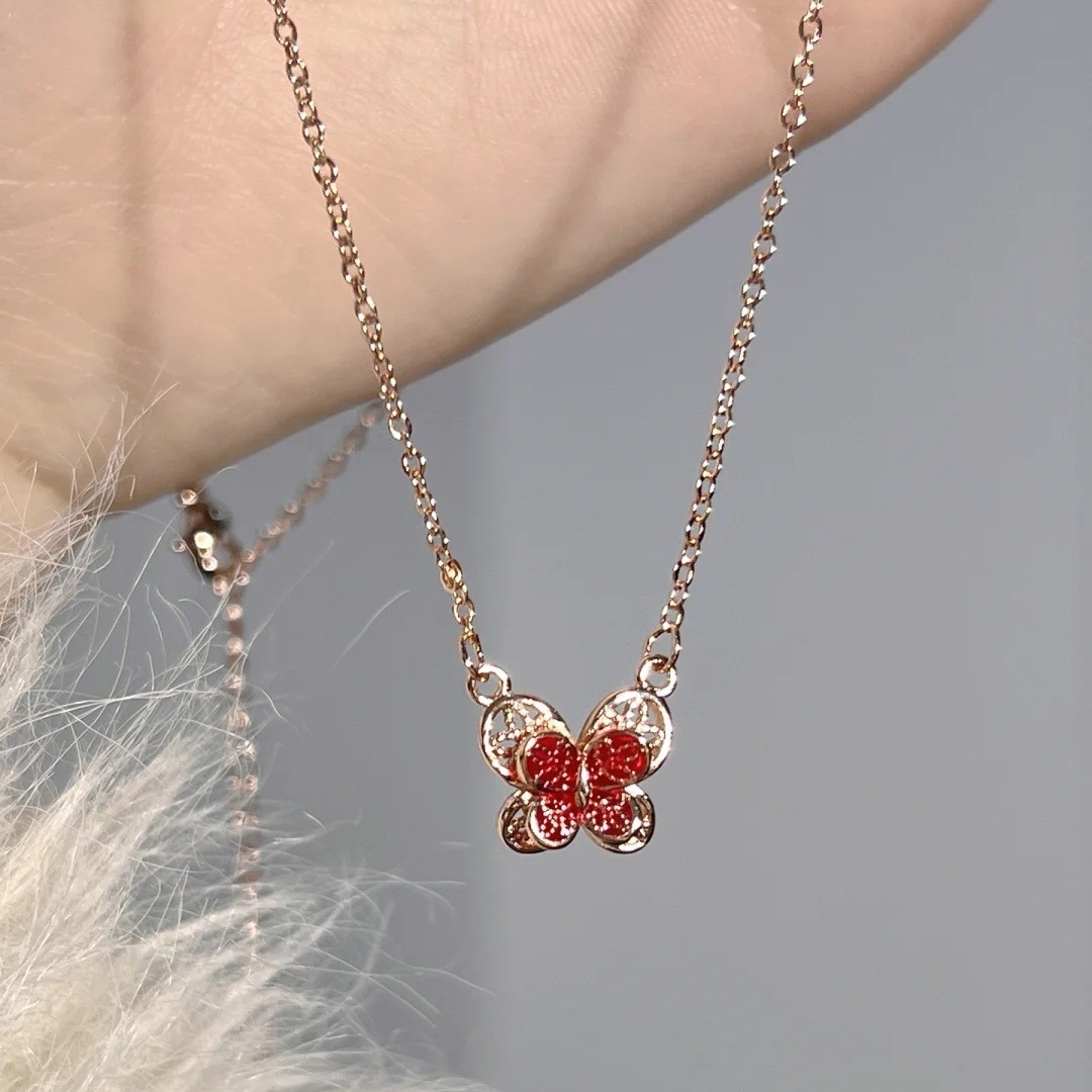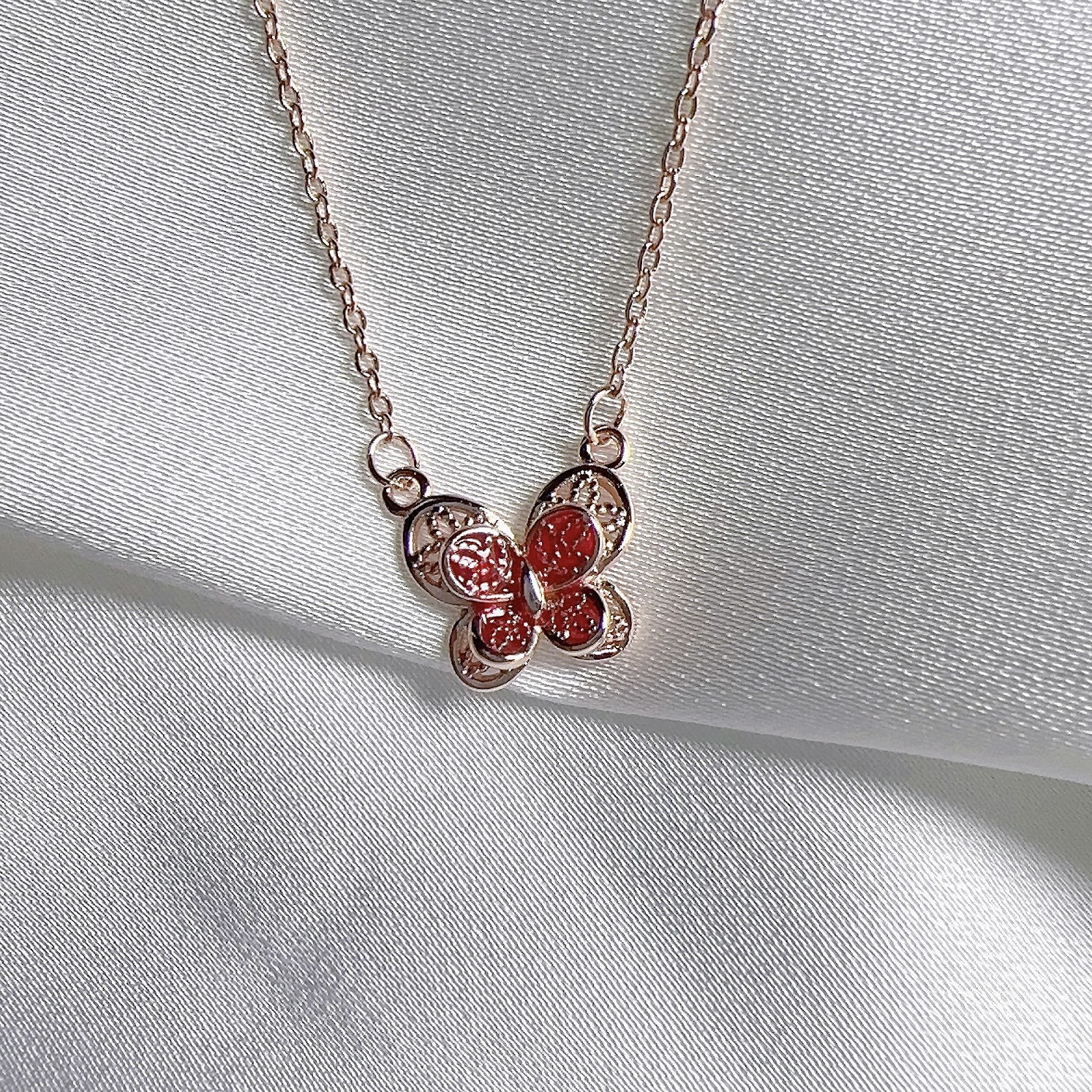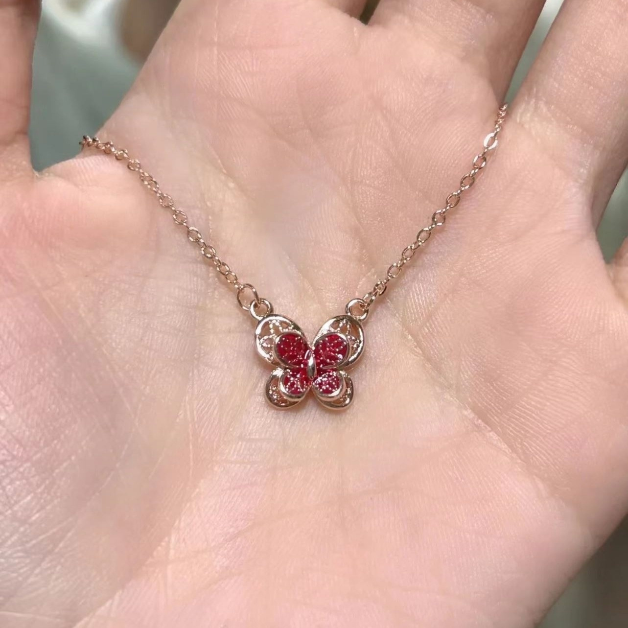 花丝蝴蝶项链爱心新中式项链项链ins蝴蝶简约