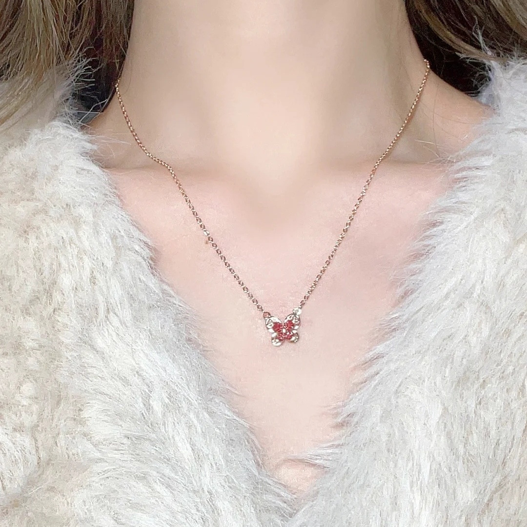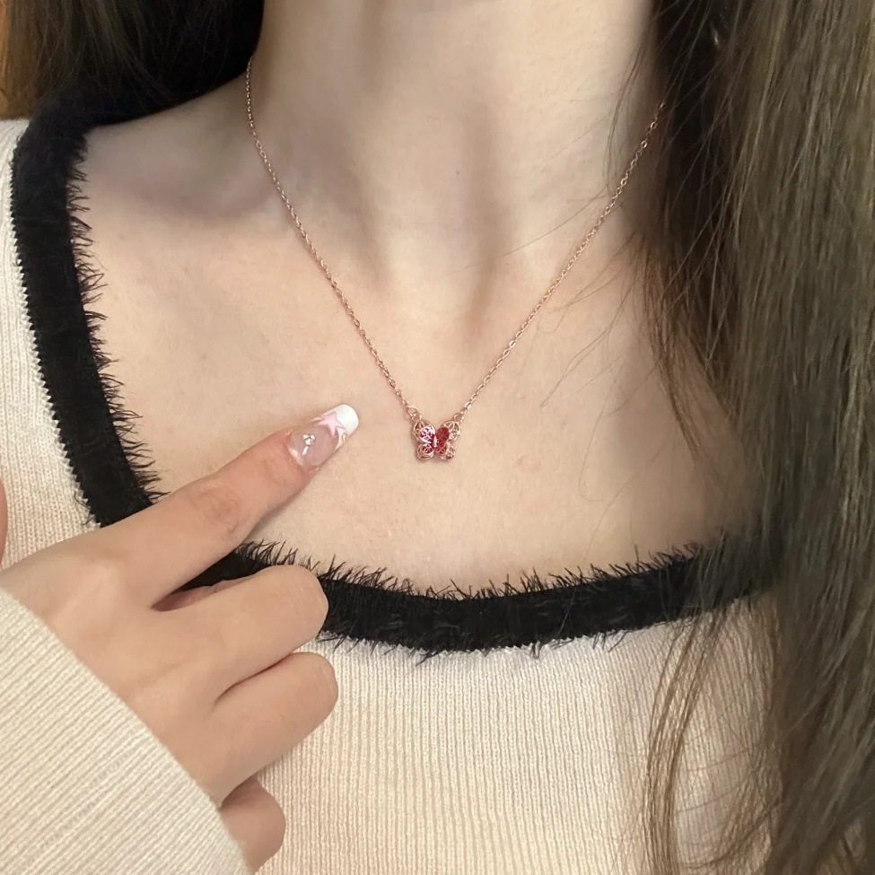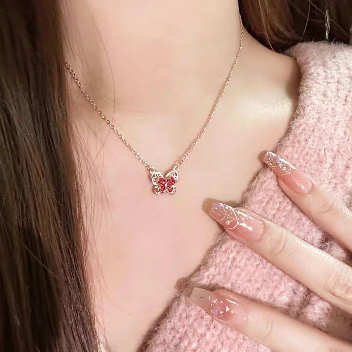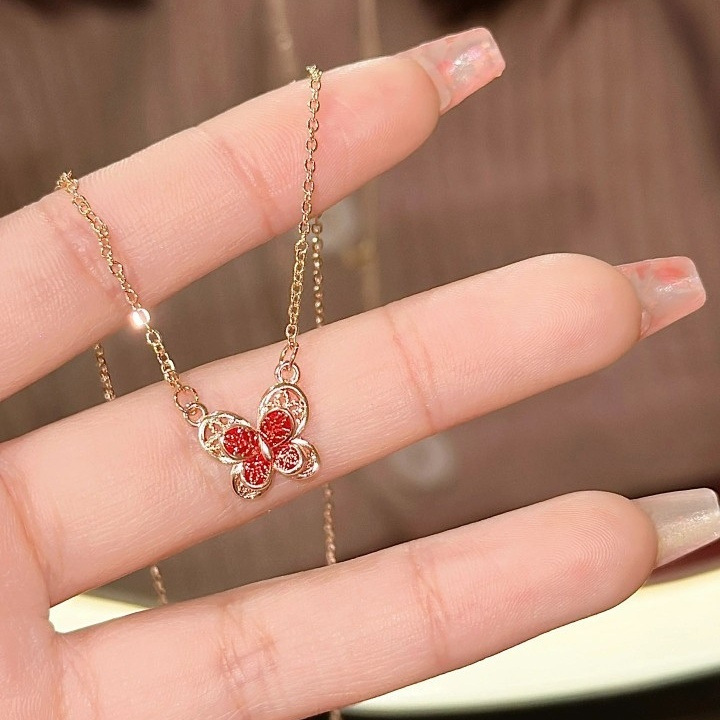花丝蝴蝶项链爱心新中式项链项链ins蝴蝶简约