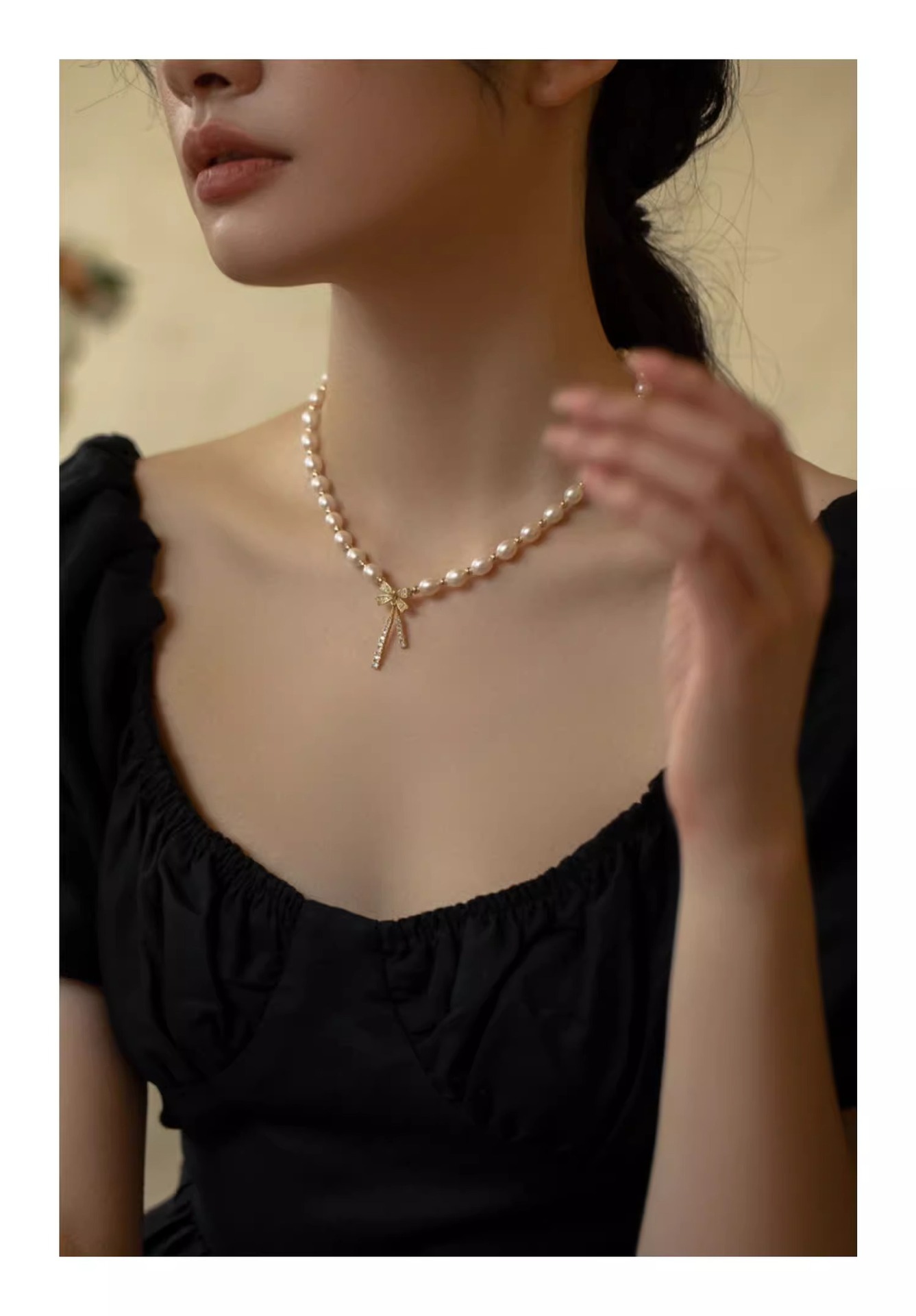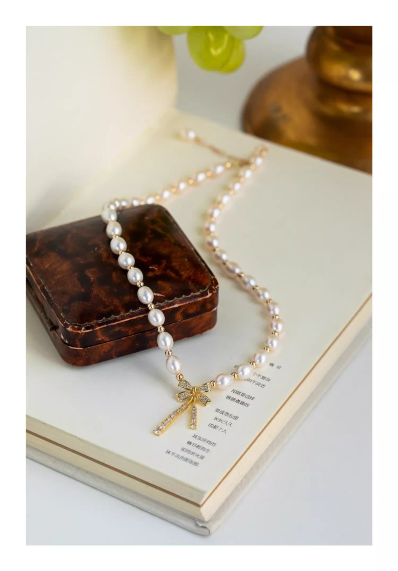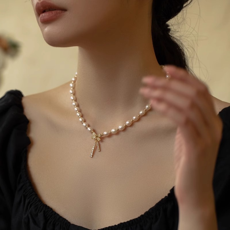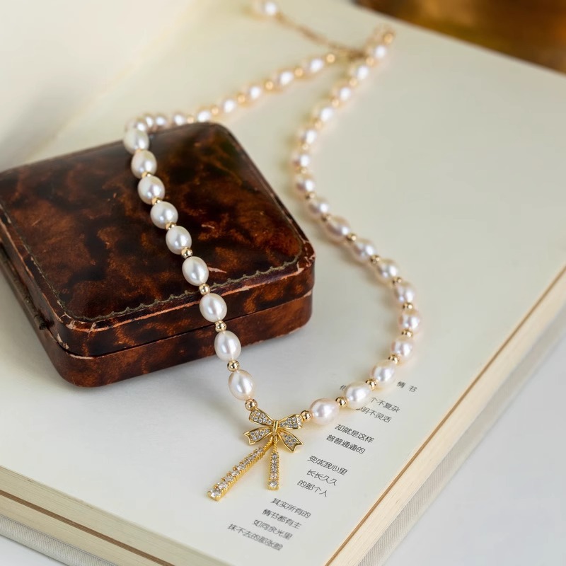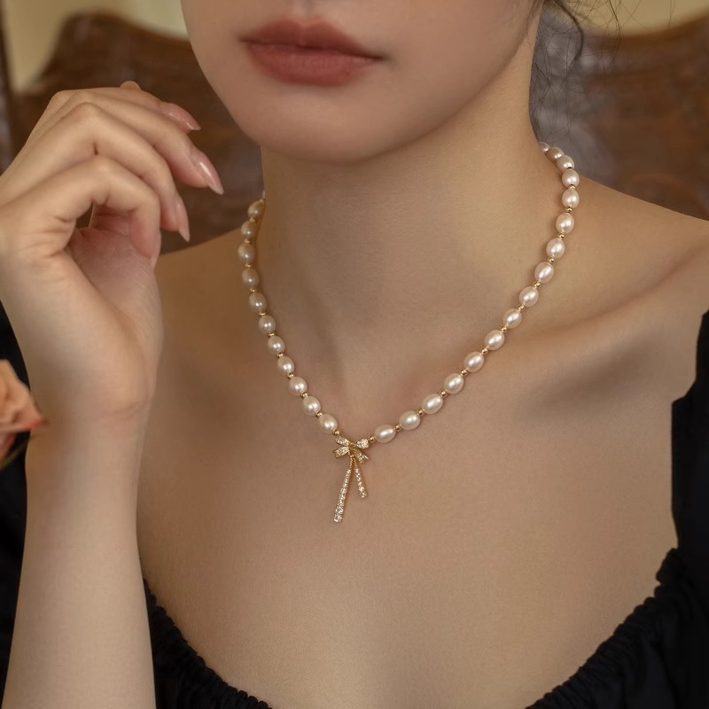 甜美锆石蝴蝶结淡水珍珠项链女2025年新款爆款高级感锁骨链颈链
