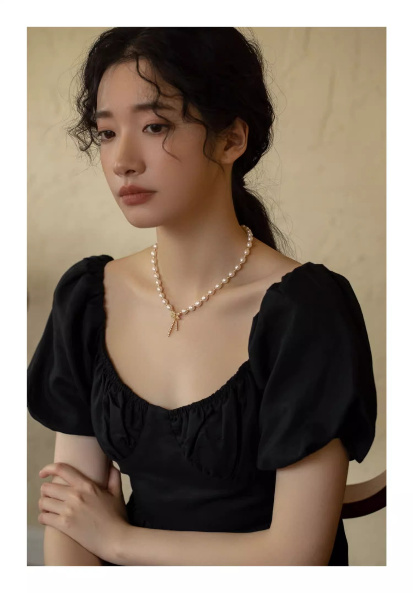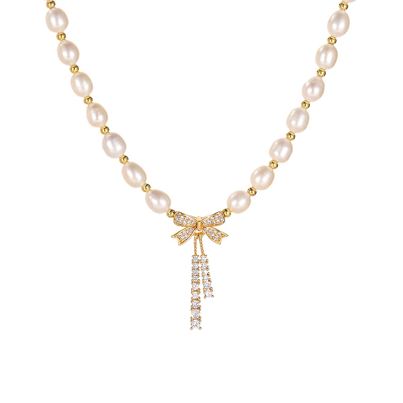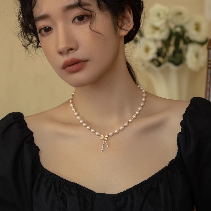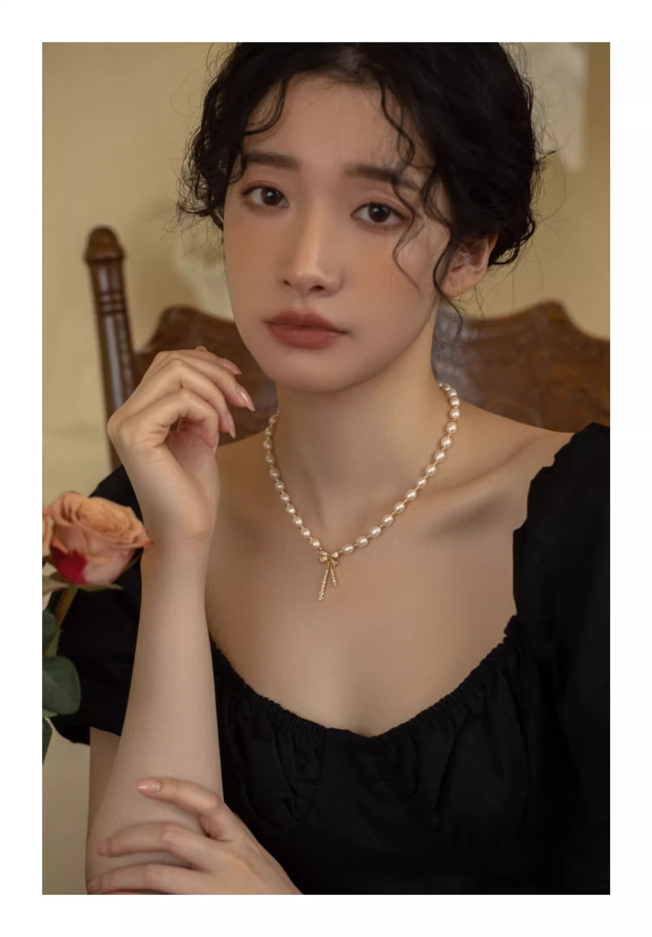 甜美锆石蝴蝶结淡水珍珠项链女2025年新款爆款高级感锁骨链颈链