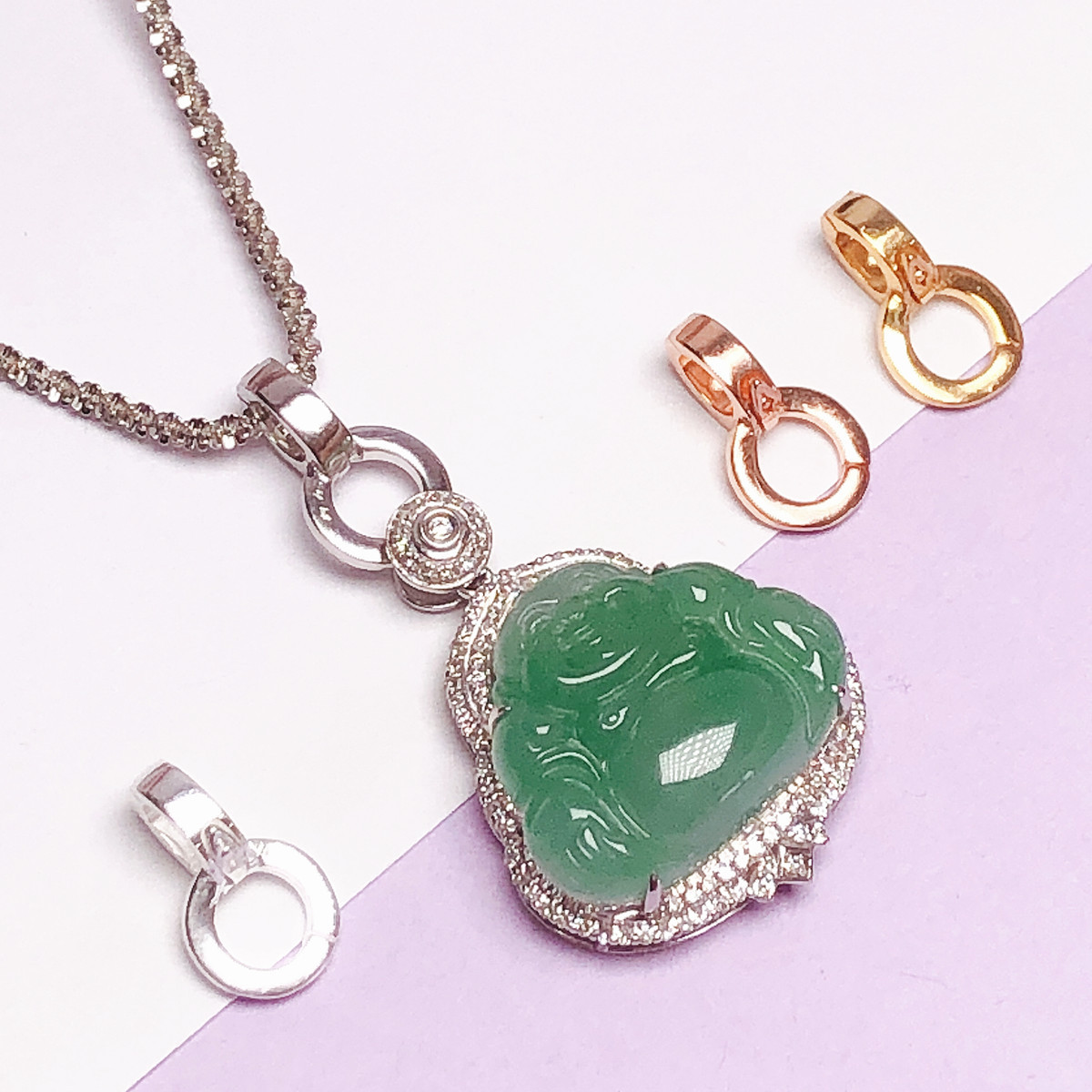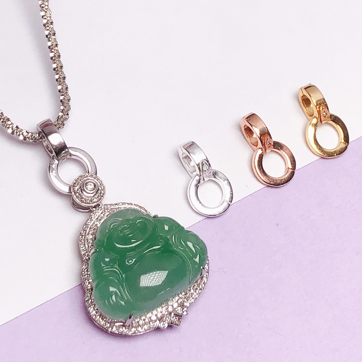 新款925纯银DIY首饰万能扣头黄金色百搭万能链项链吊坠用光面包邮