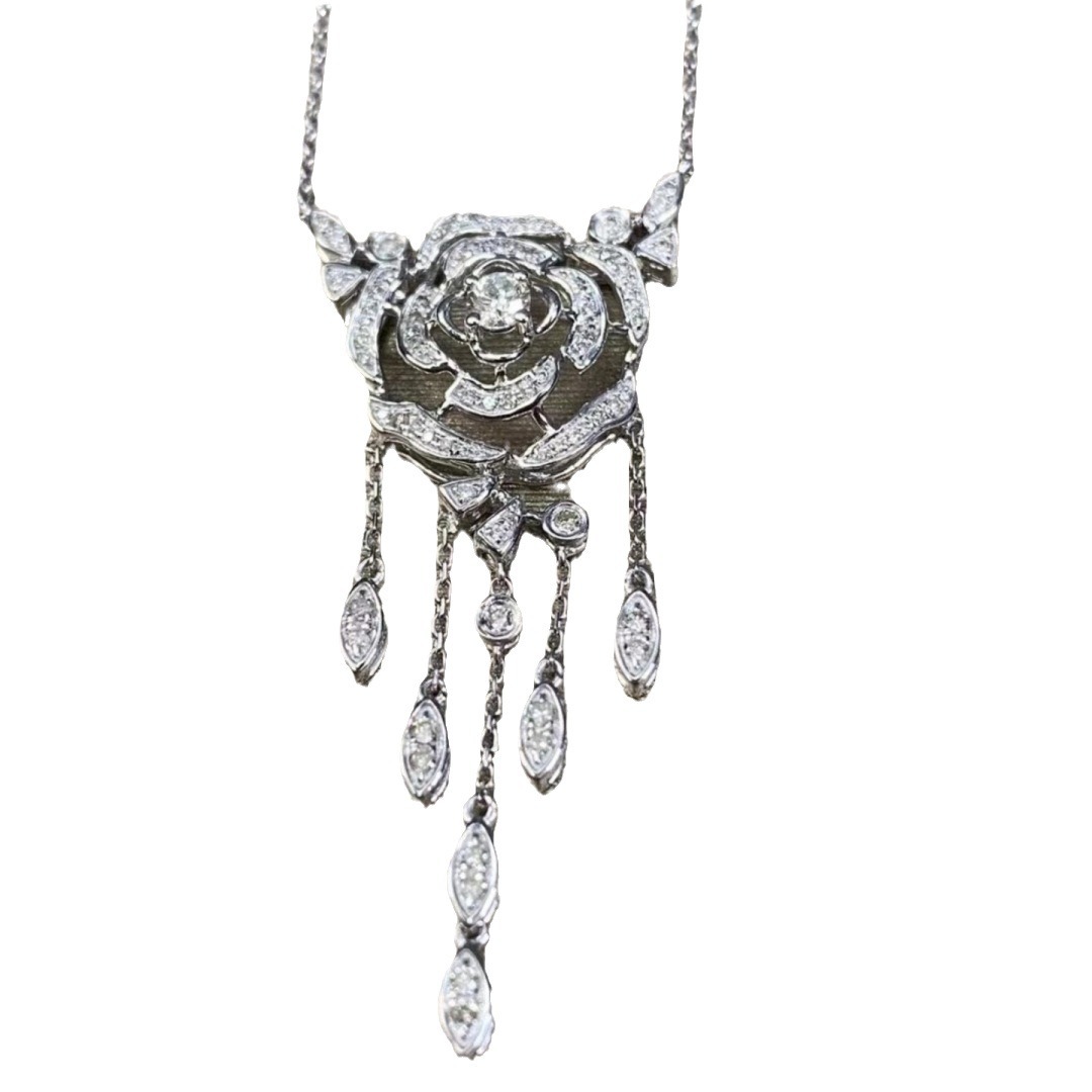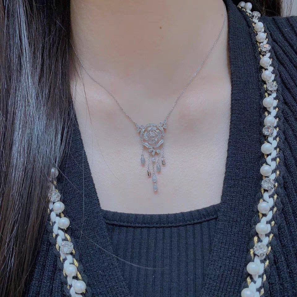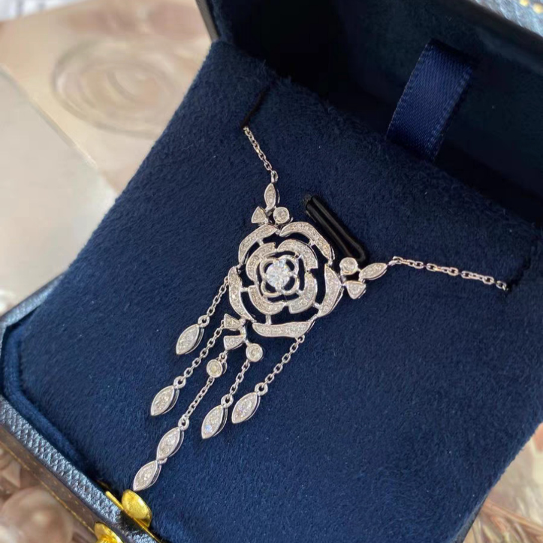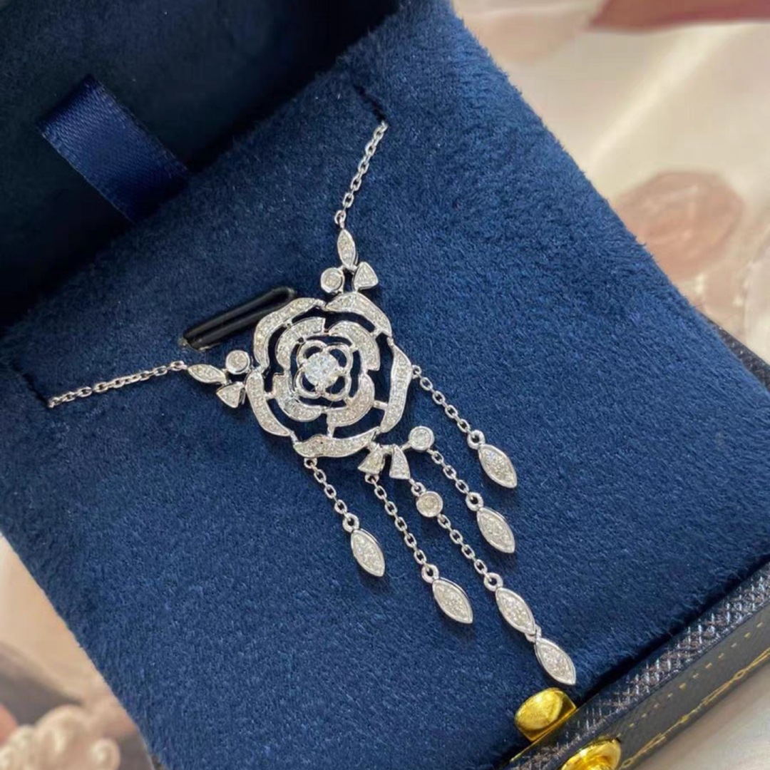 超仙山茶花吊坠项链女轻奢高颜值名媛气质玫瑰花长款流苏耳坠套装