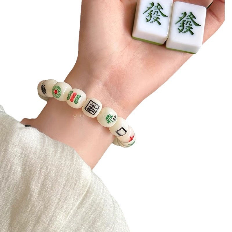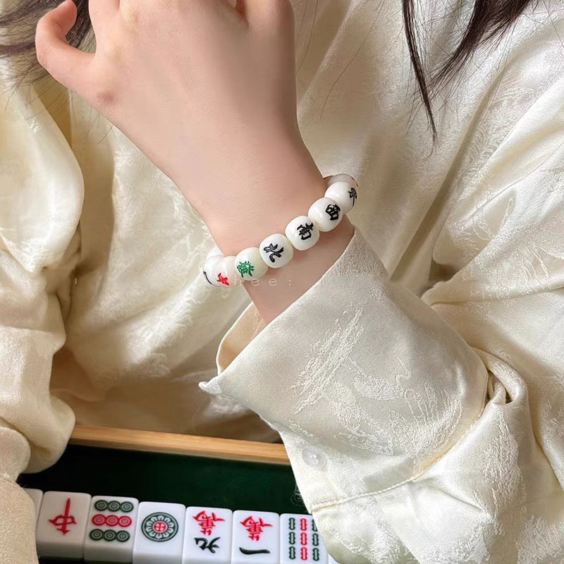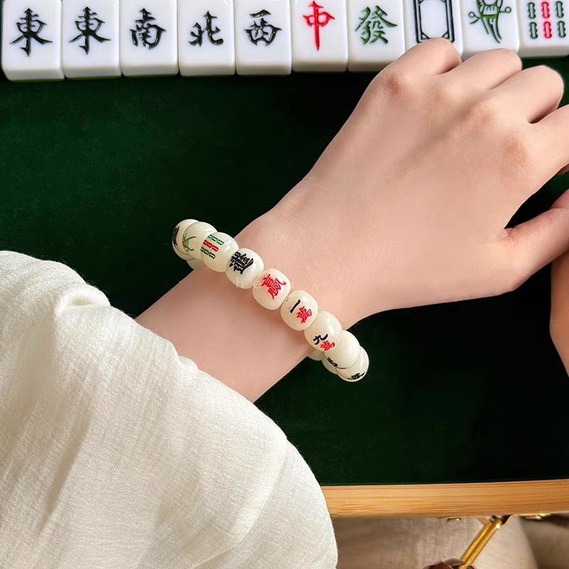 创意国风白菩提麻将手串新中式个性文创文玩手链单圈十三幺手链