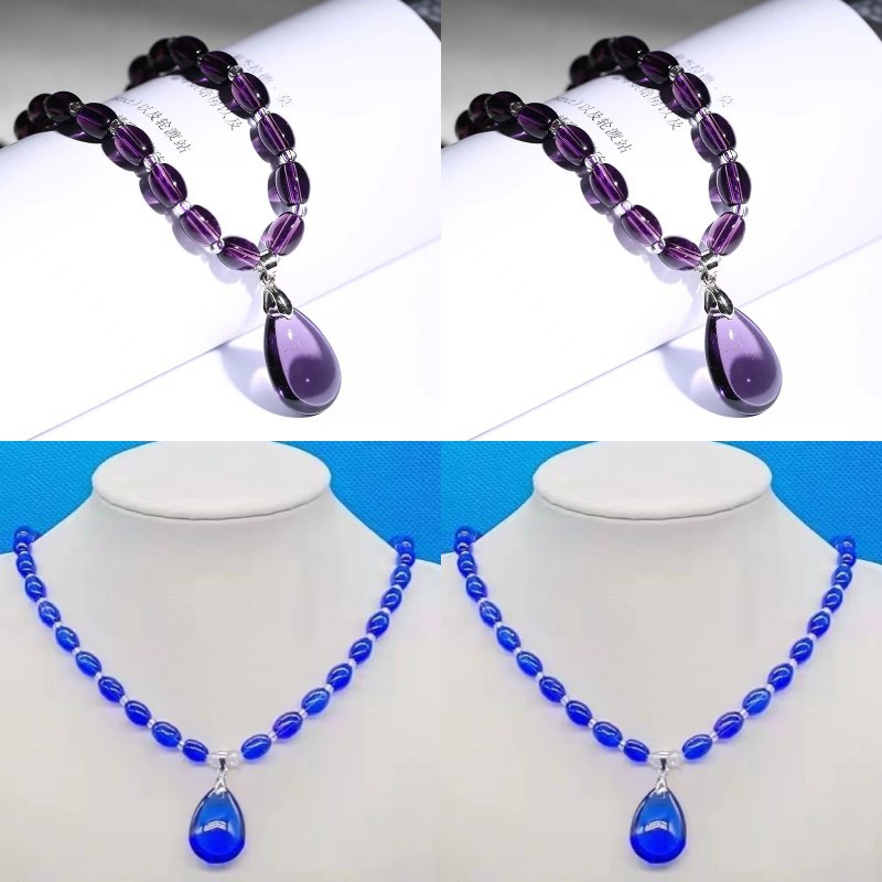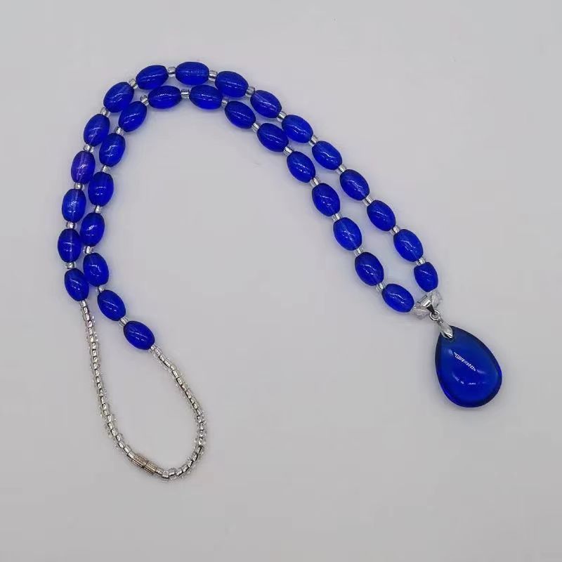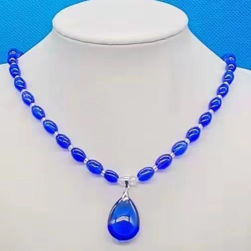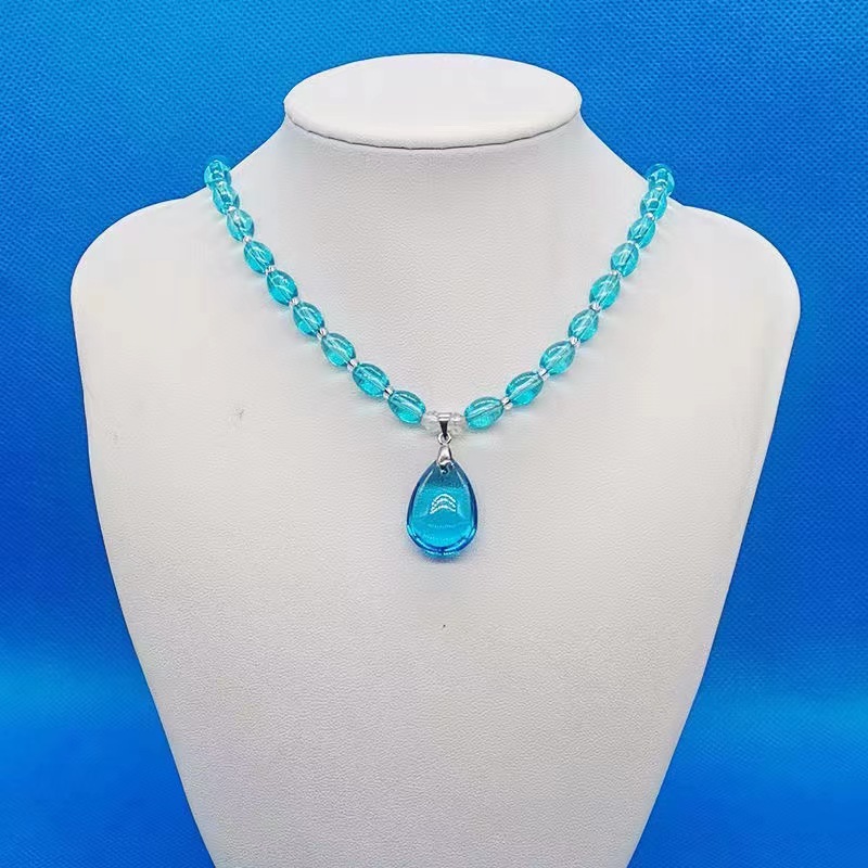 宝蓝色水晶水滴吊坠项链锁骨链 简约妈妈生日礼物女士项链