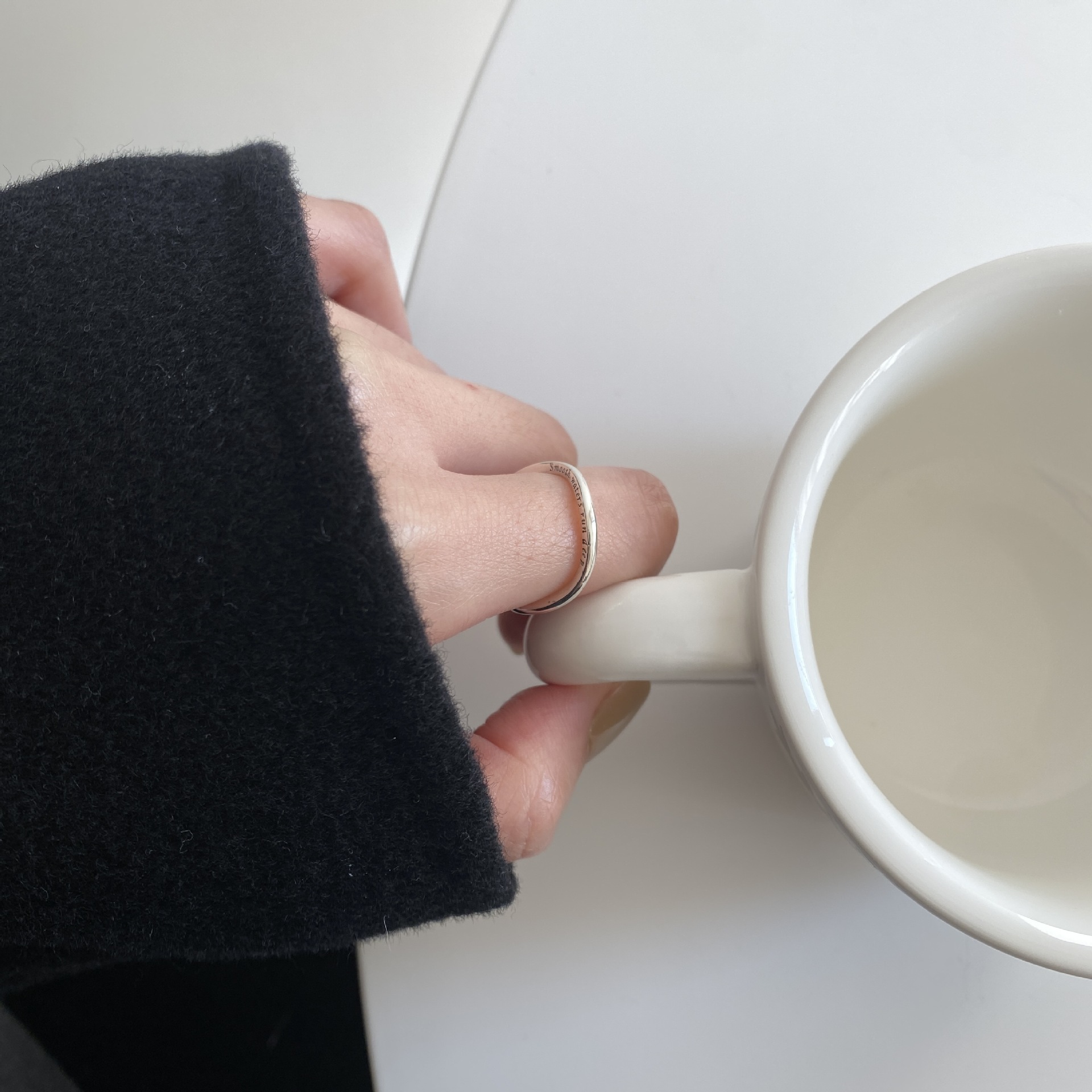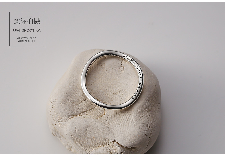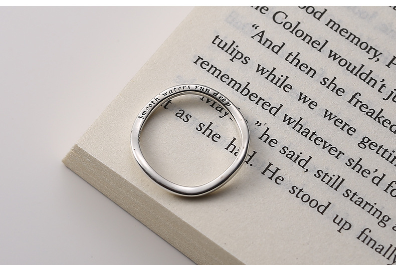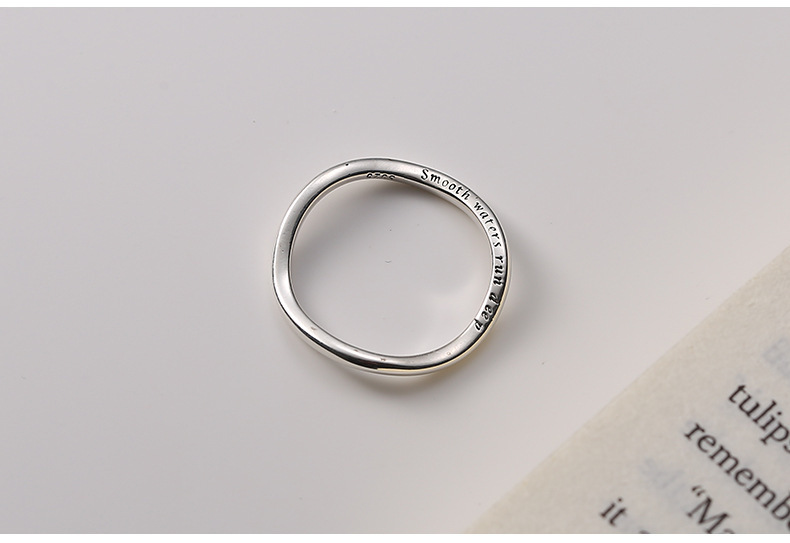 925纯银字母扭曲戒指女简约百搭基础个性波浪闭口设计指环0129Y