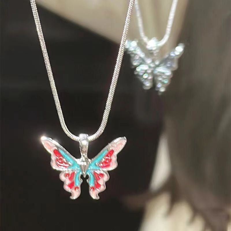 粉彩蝴蝶项链 梦幻仙境蝴蝶锁骨链女ins小众颈链潮个性
