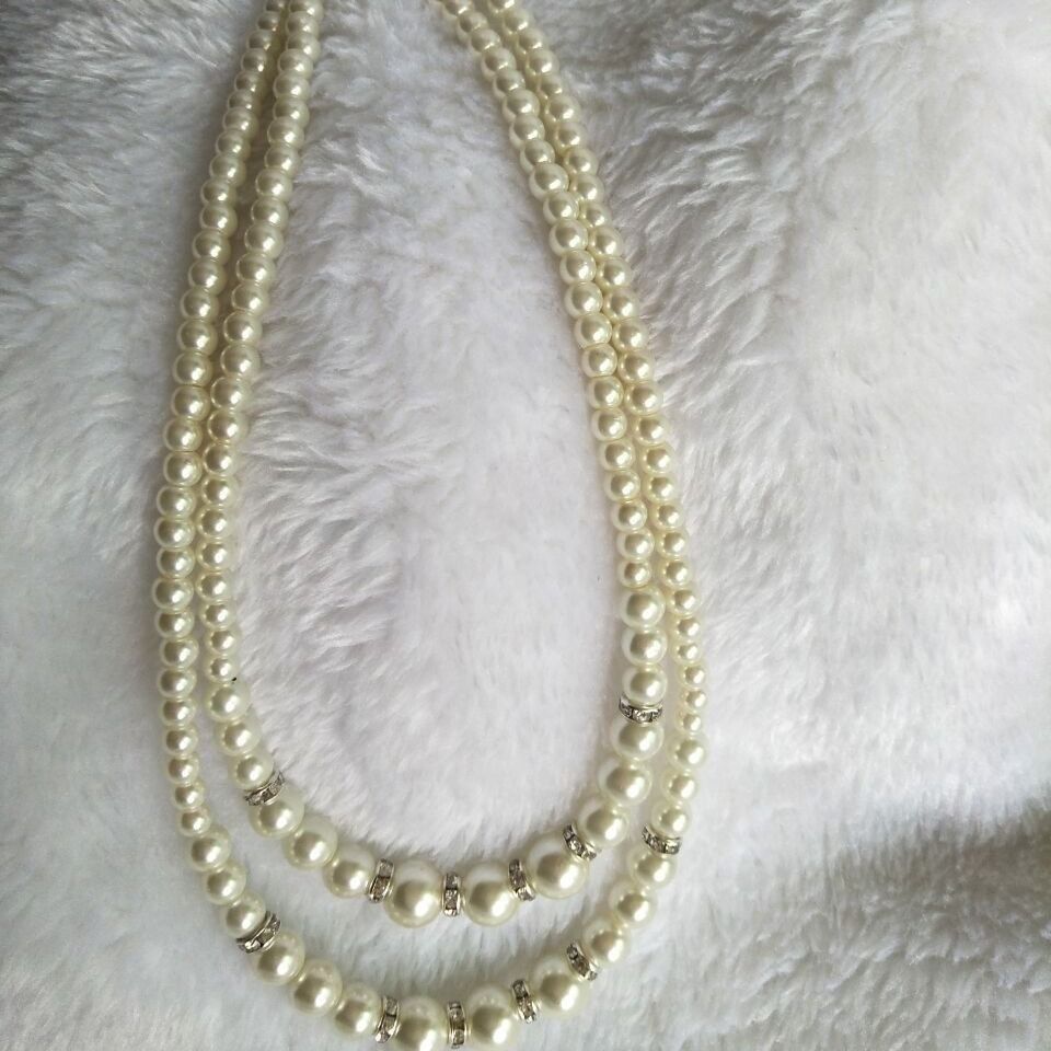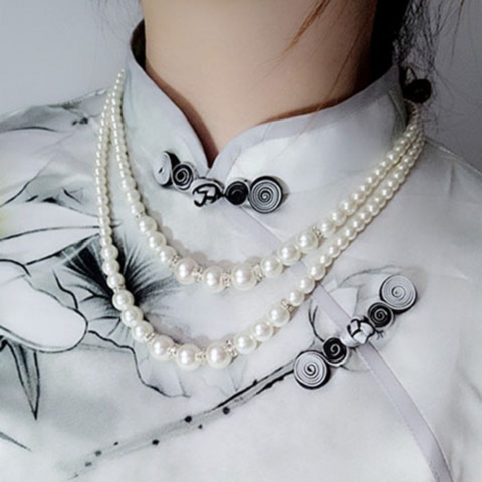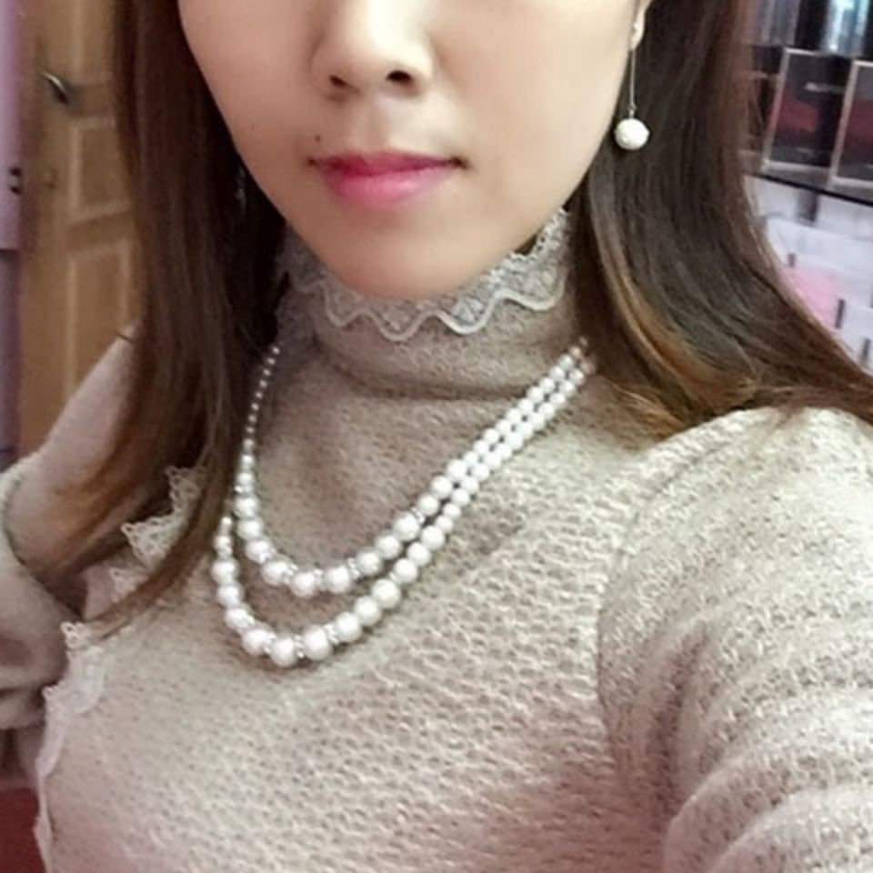 2024新款同款双层珍珠锁骨项链毛衣链旗袍颈链百搭带钻圈项链