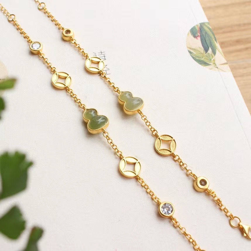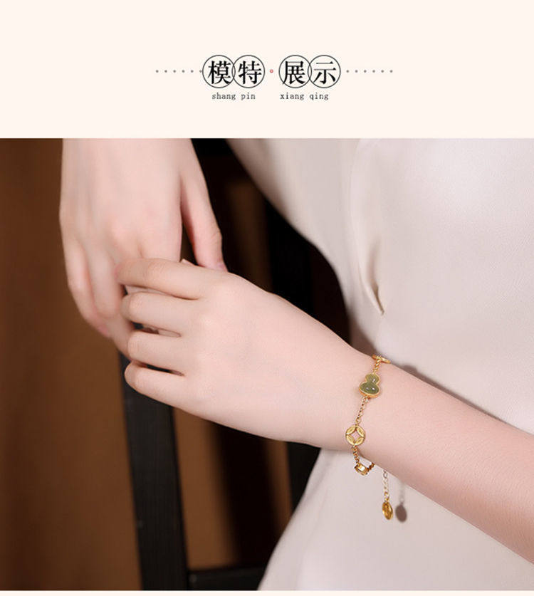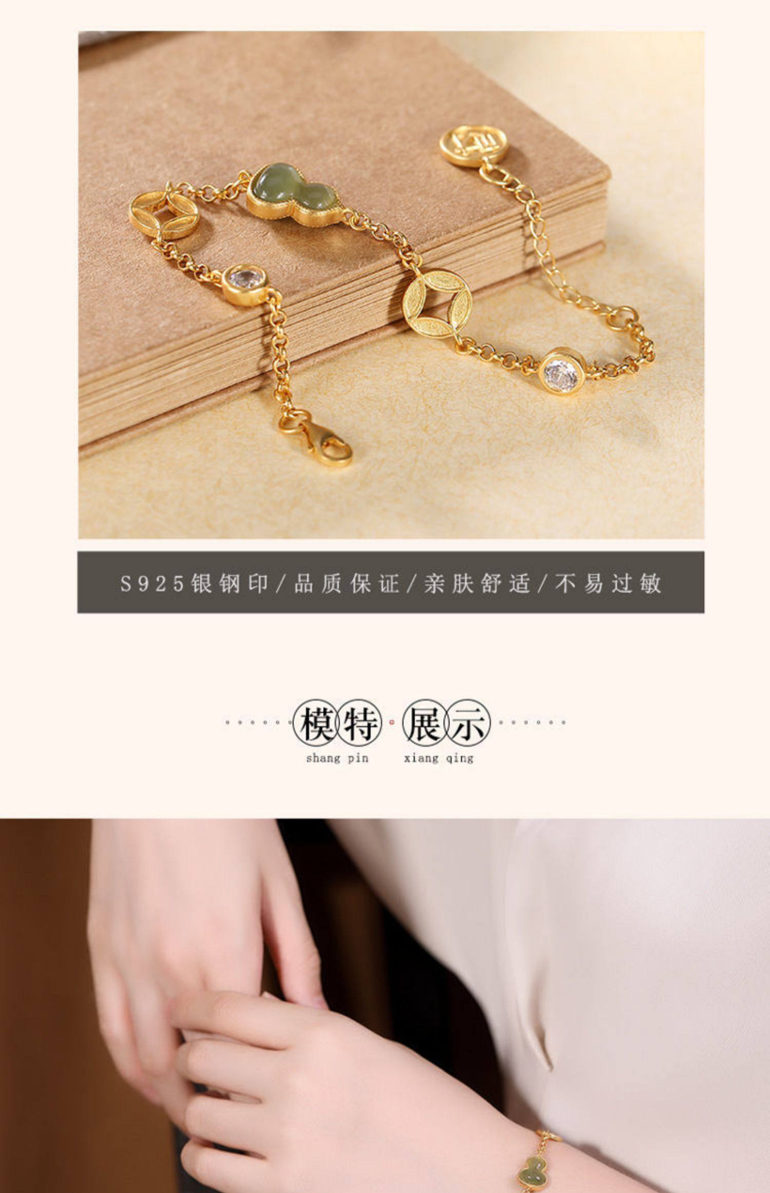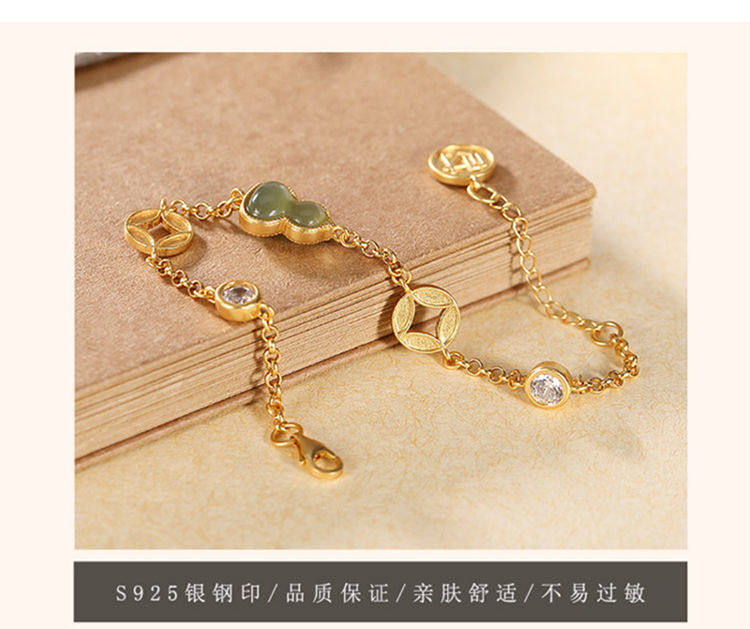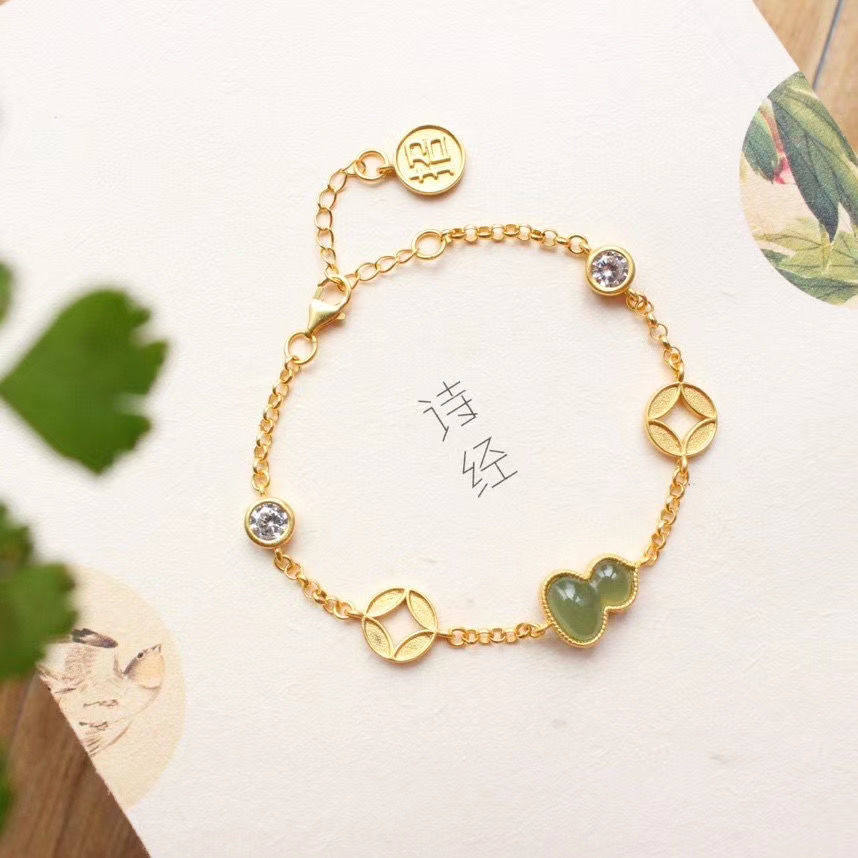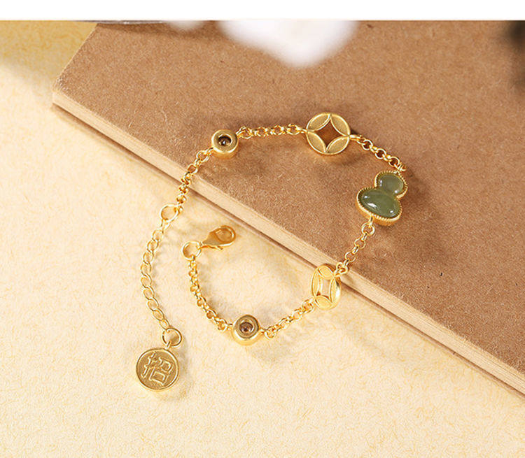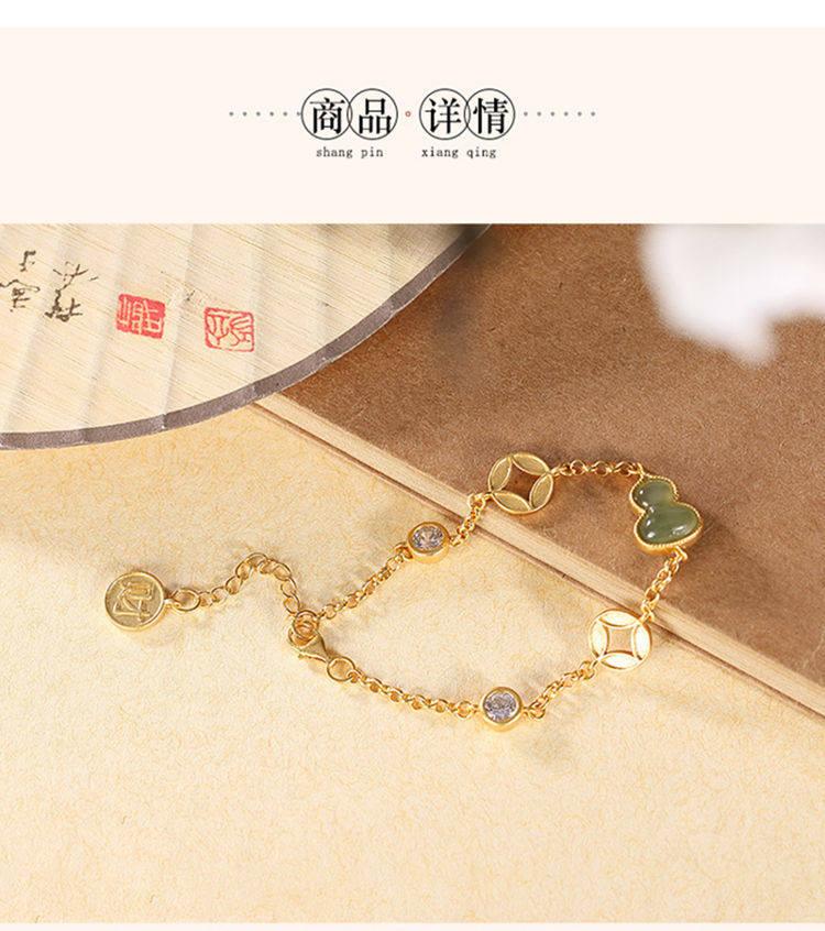 民族风配女故宫上新古法金天然玉中式葫芦钱币福禄手链手串情