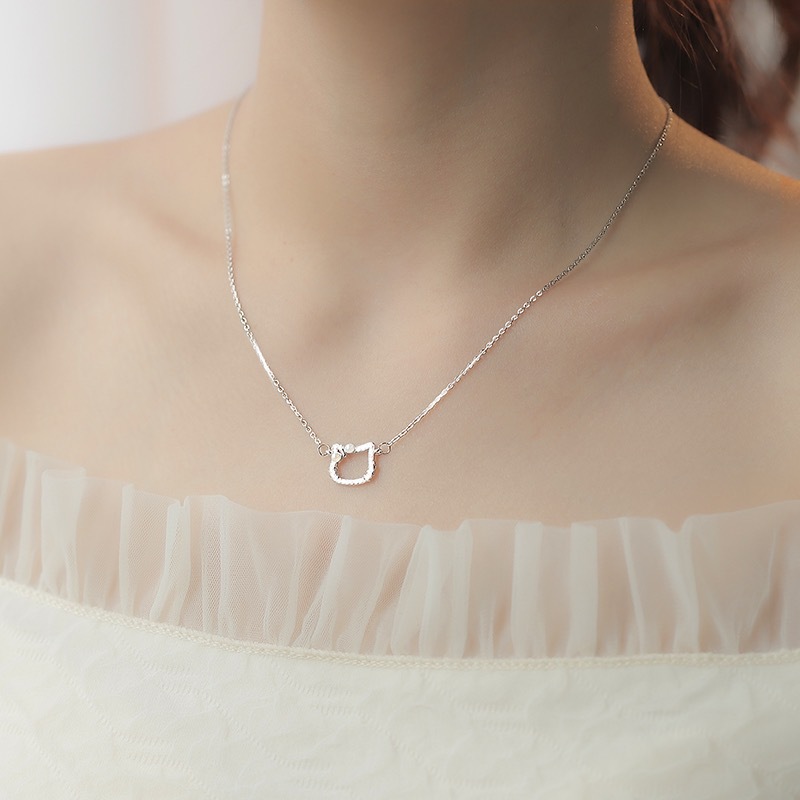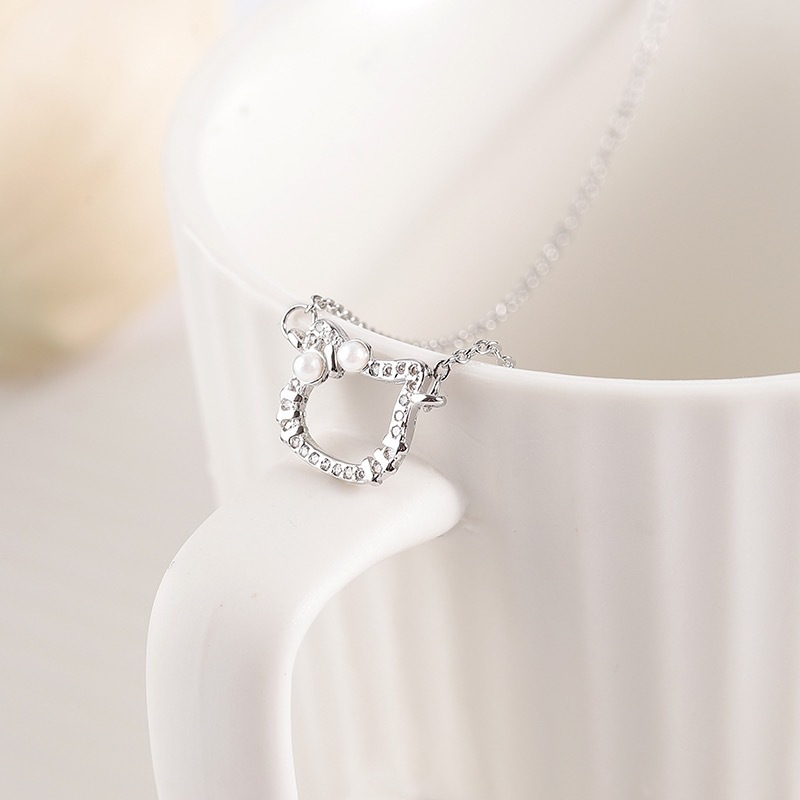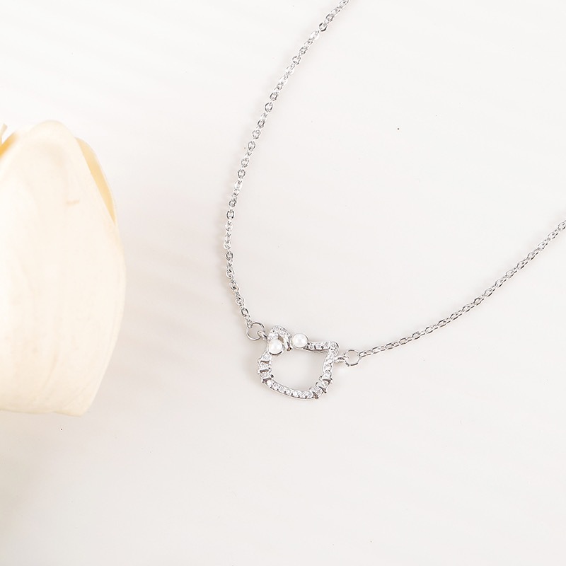 2022新款韩猫猫头珍珠蝴蝶结可爱优雅镶钻吊坠送女友礼物闺蜜项链