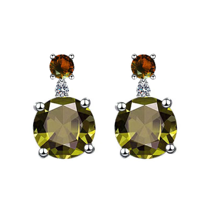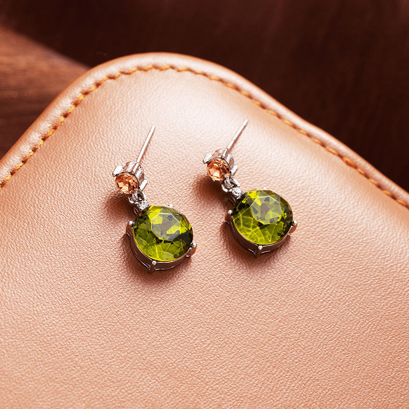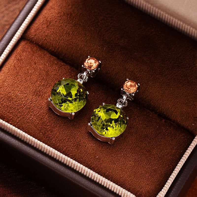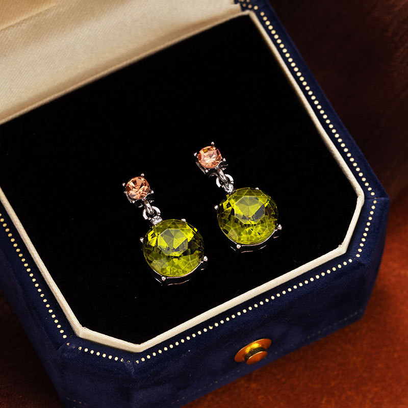 超闪绿色水晶方糖耳环韩系高级感轻奢小众耳饰银针耳钉女时尚耳坠