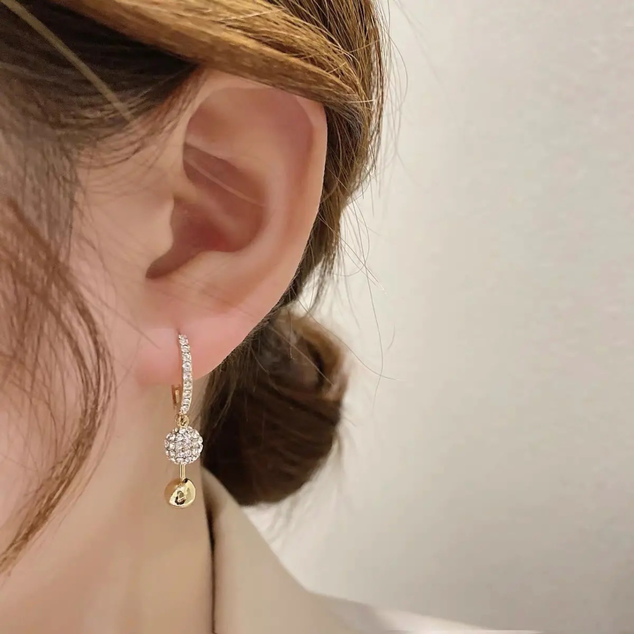 抖音热卖镶钻圆球耳环耳扣款金属圆圈女百搭灵动女耳环百搭甜美