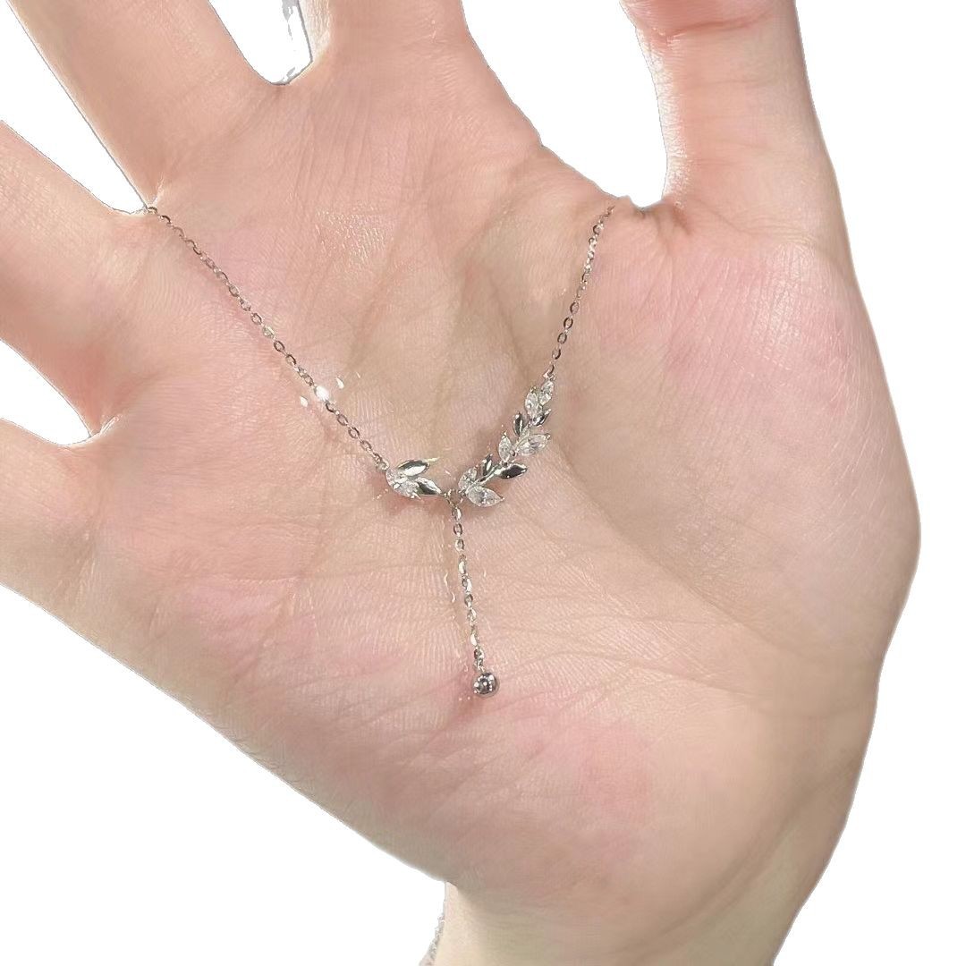 超闪亮麦穗项链女夏季甜美小众设计穗穗平安树叶流苏锁骨链
