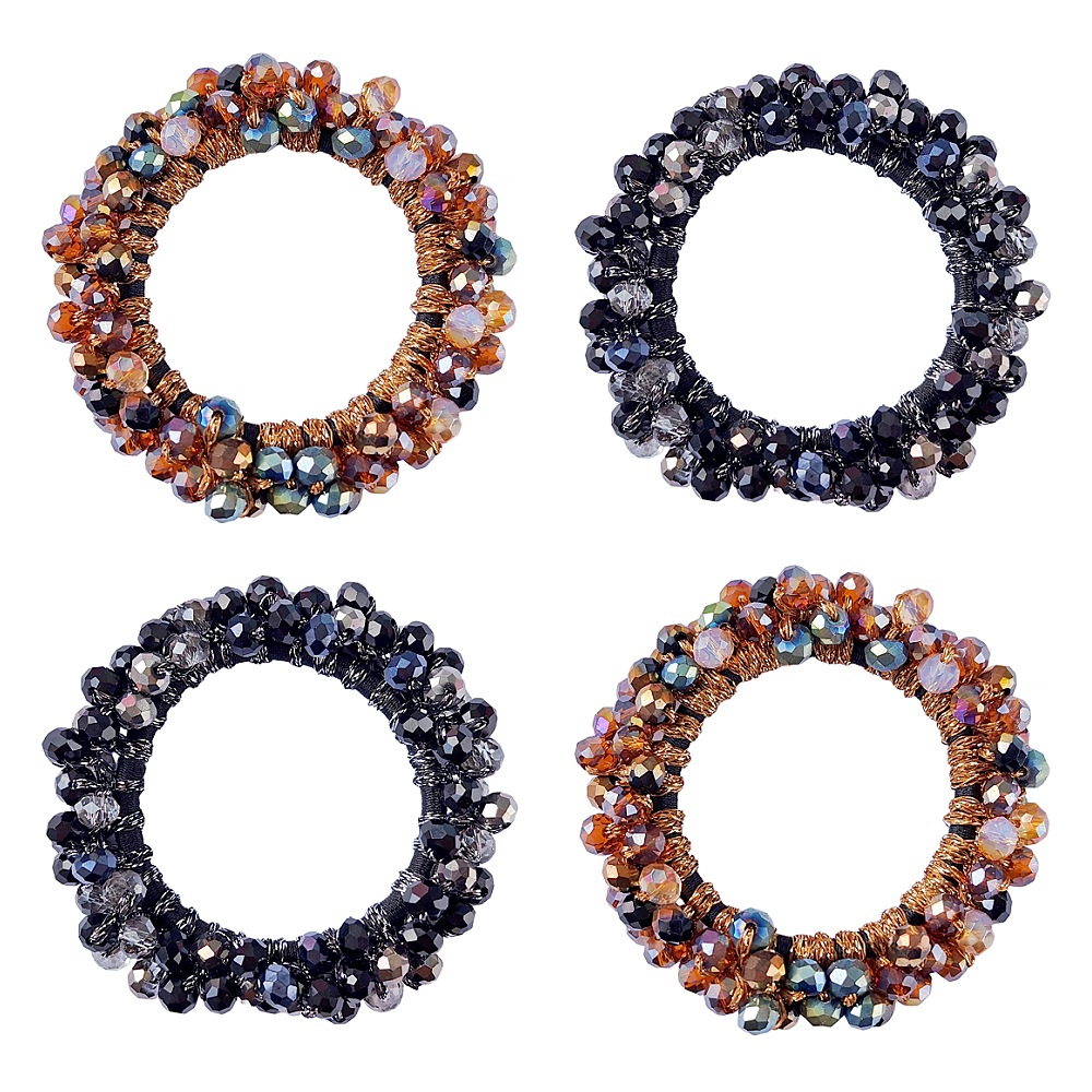 欧美时尚发饰女彩色水钻发绳弹力丸子头水钻皮筋盘发百搭马尾发圈