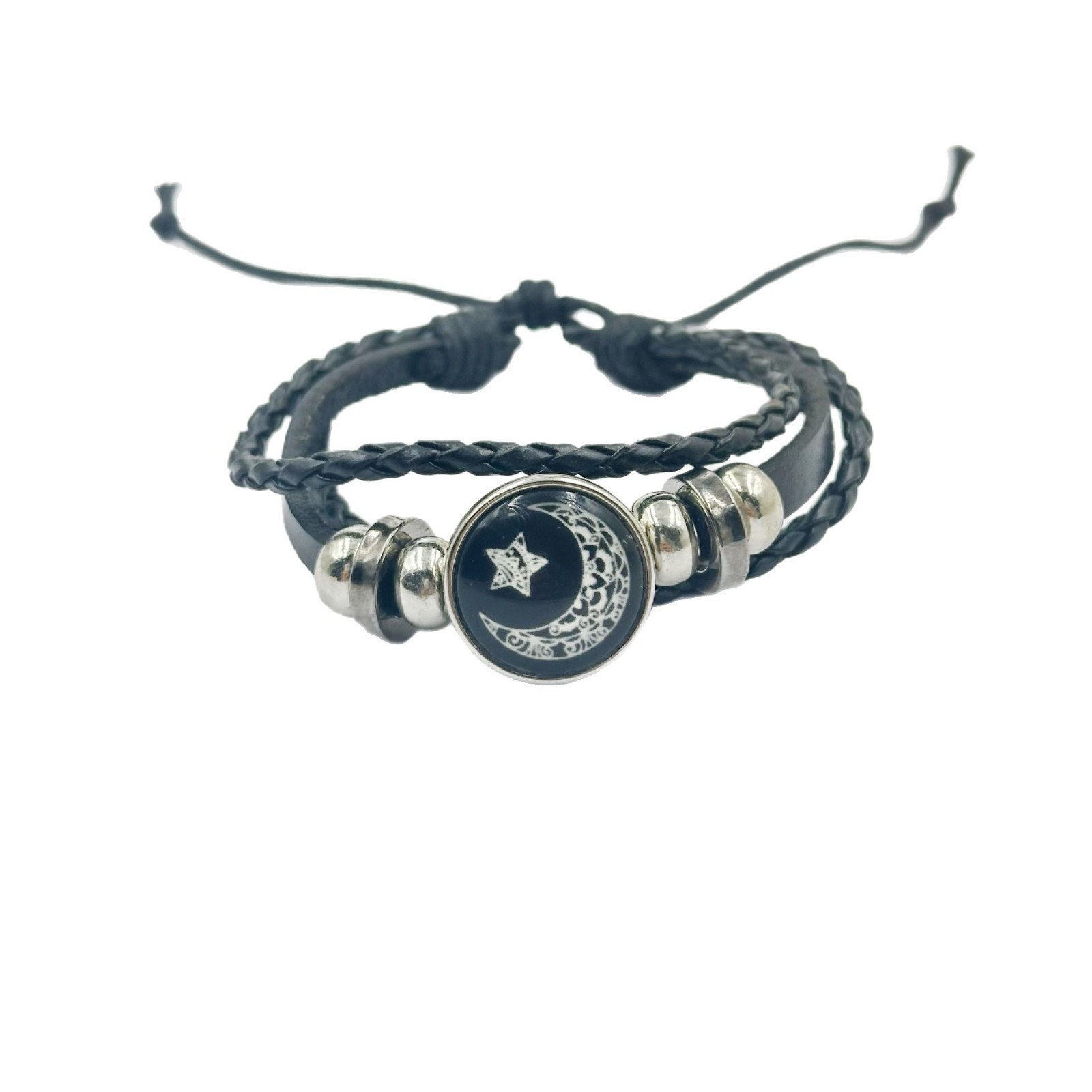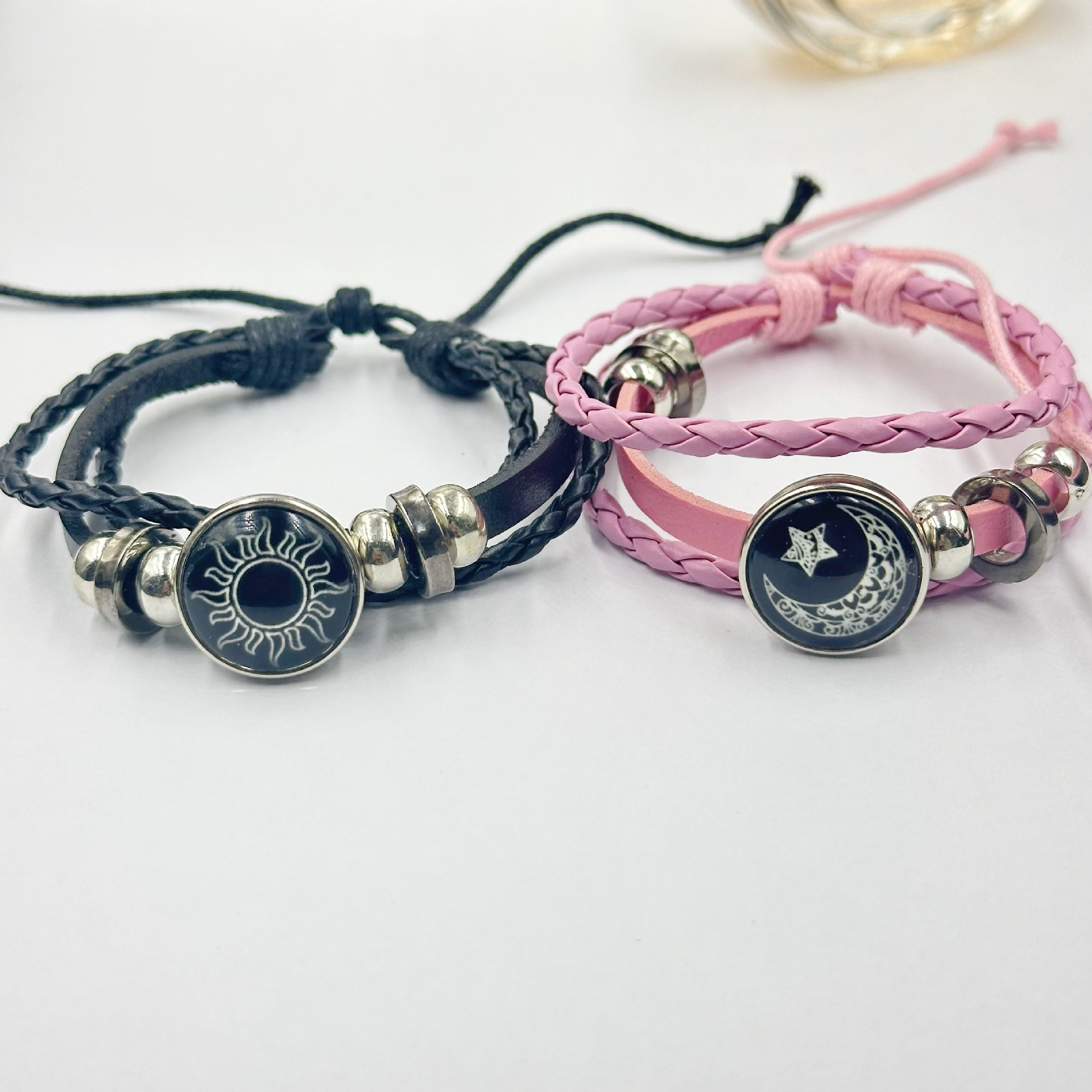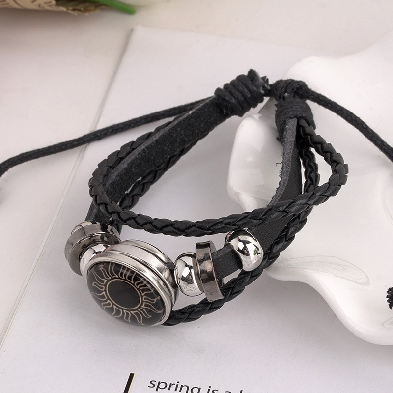 DF夜光日月恋人时光宝石手链男女通用复古手工多层串珠编织皮革手