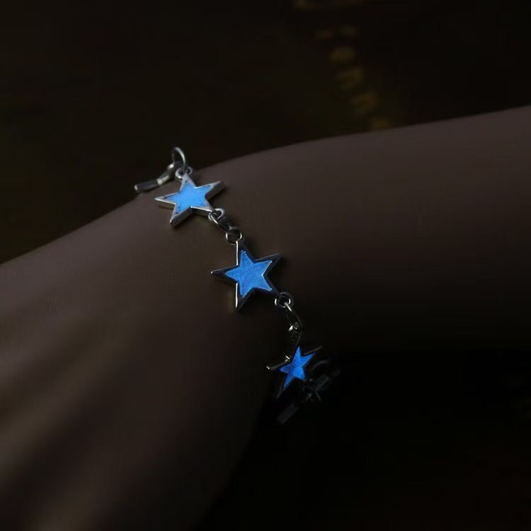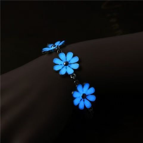 星星爱心花朵发光情侣手镯蓝色小清新花朵闺蜜荧光手链