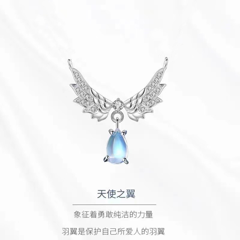 天使之翼月光石diy吊坠项链女轻奢小众设计感高级锁骨链夏季配饰
