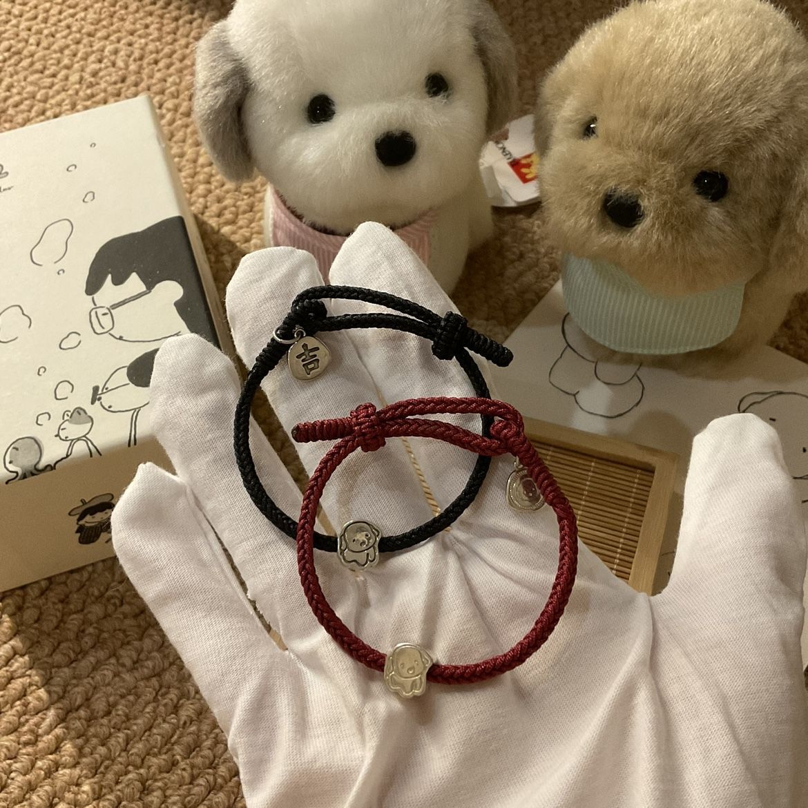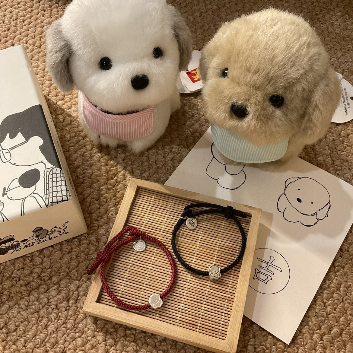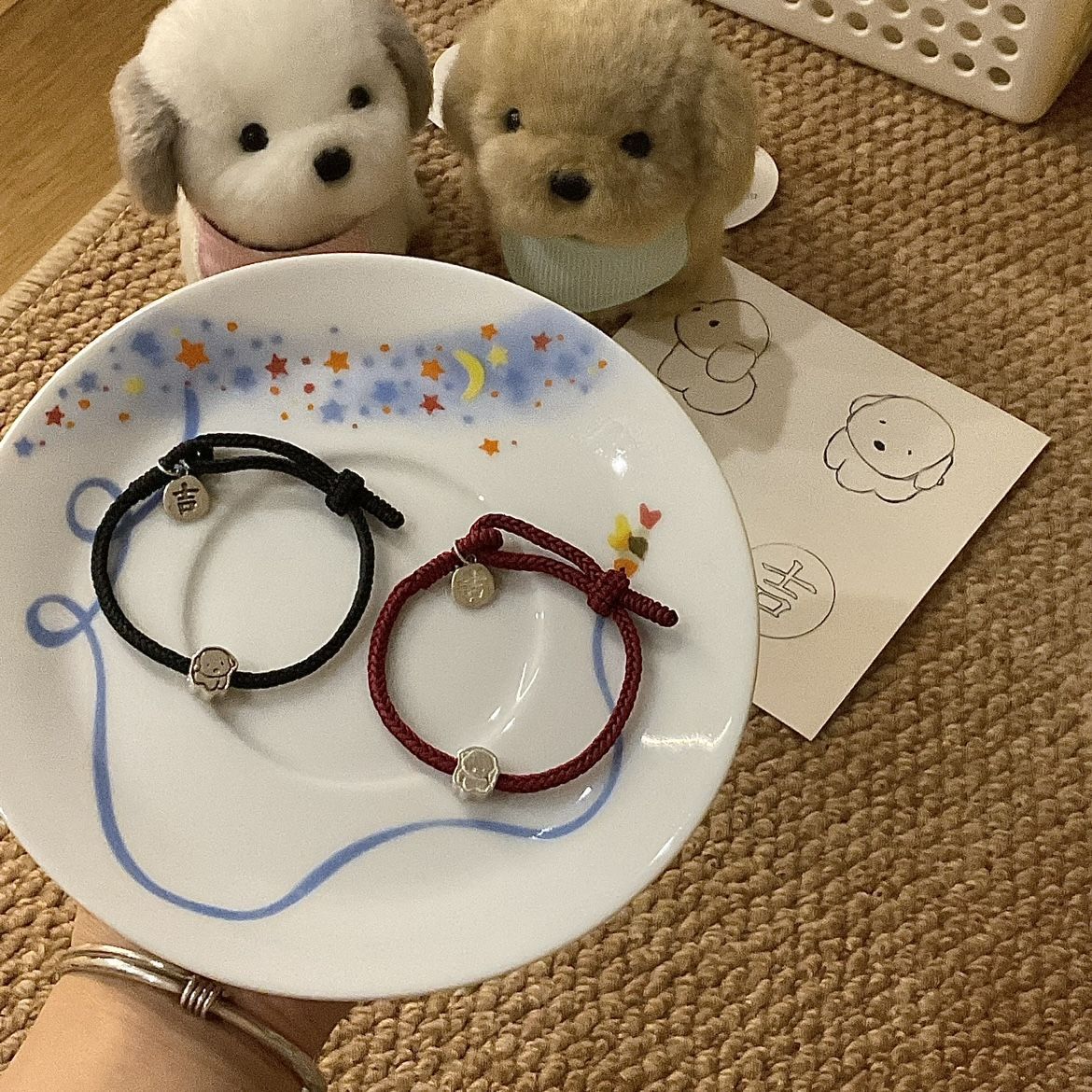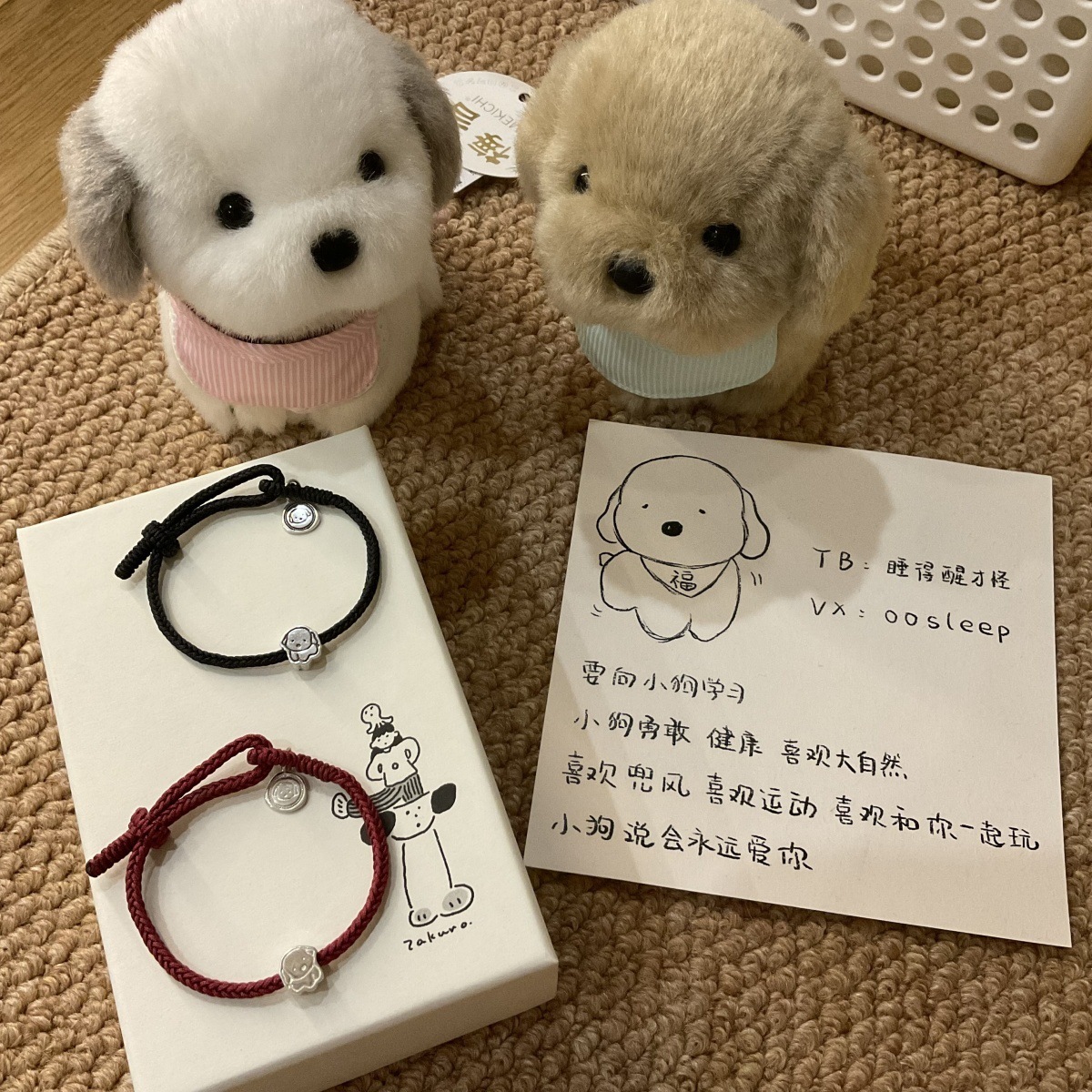 睡得醒才怪吉祥小狗牌手绳/手工编织手绳可调节可爱情侣手链