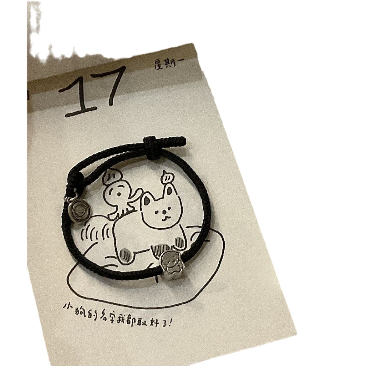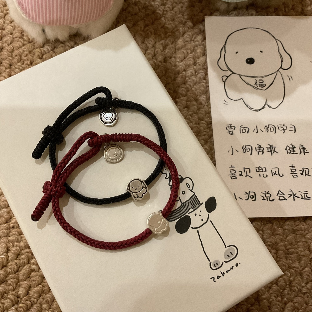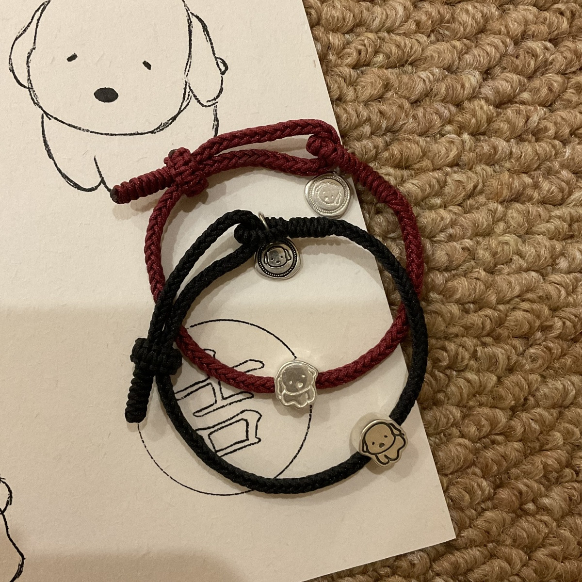 睡得醒才怪吉祥小狗牌手绳/手工编织手绳可调节可爱情侣手链