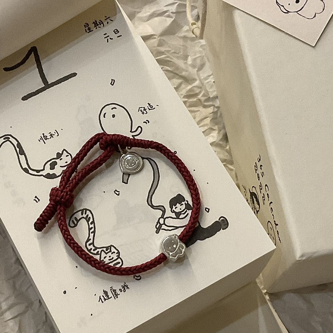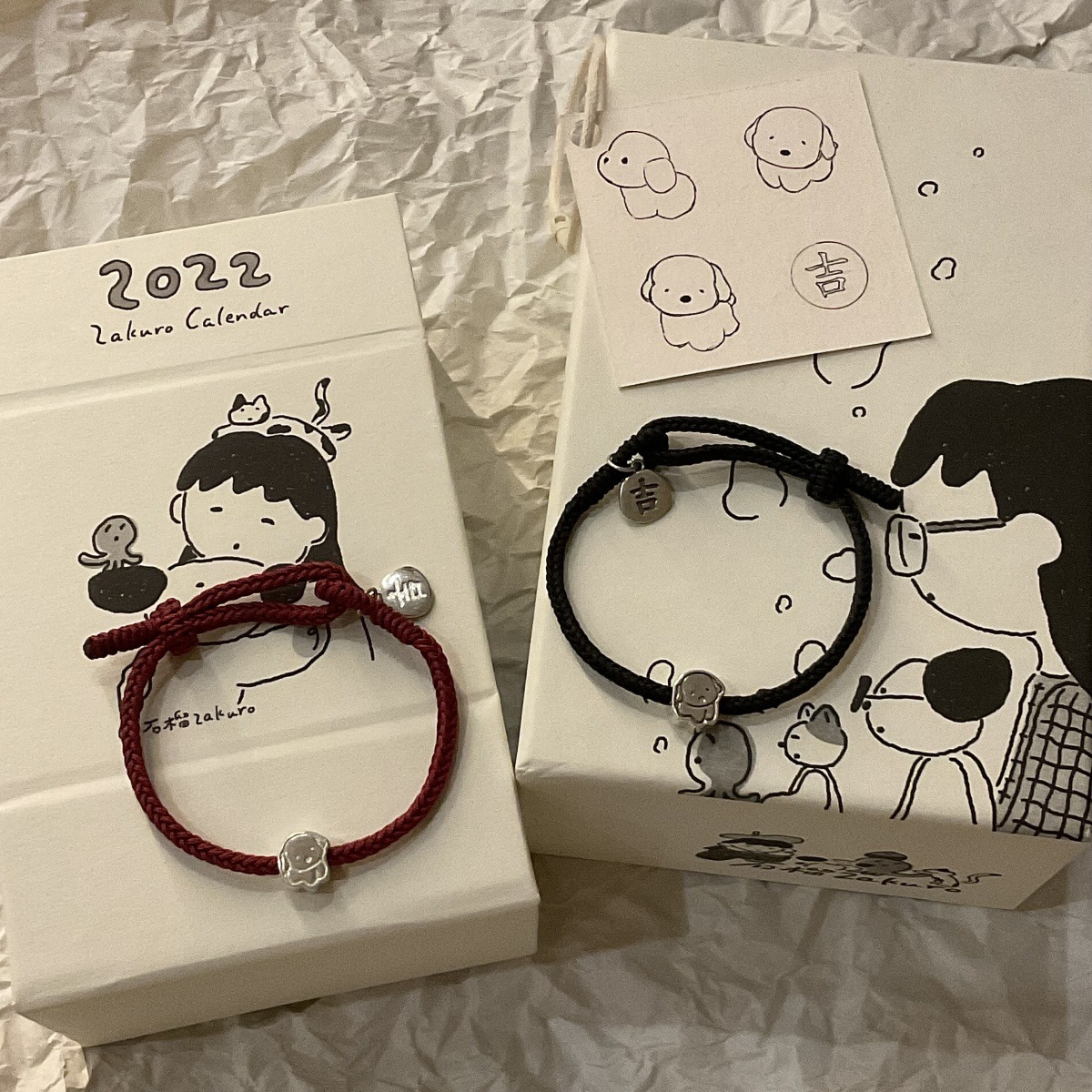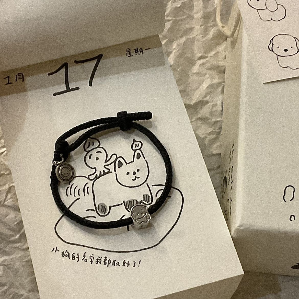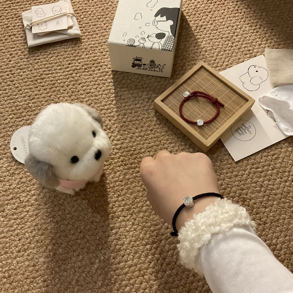 睡得醒才怪吉祥小狗牌手绳/手工编织手绳可调节可爱情侣手链