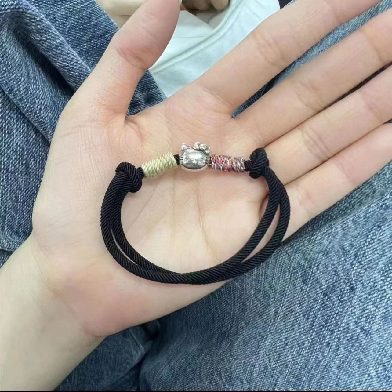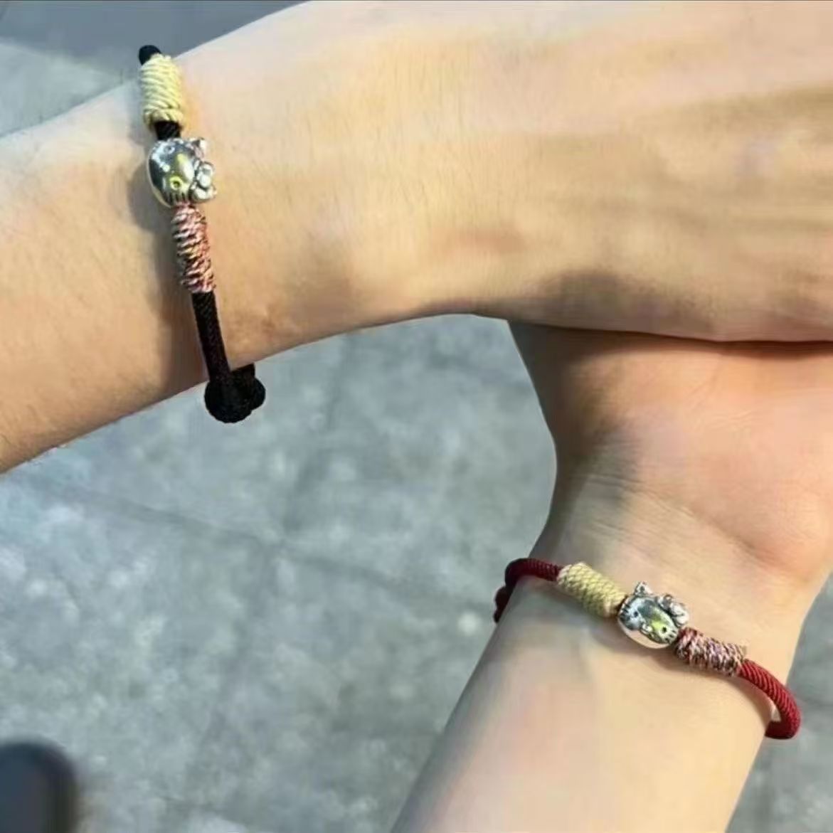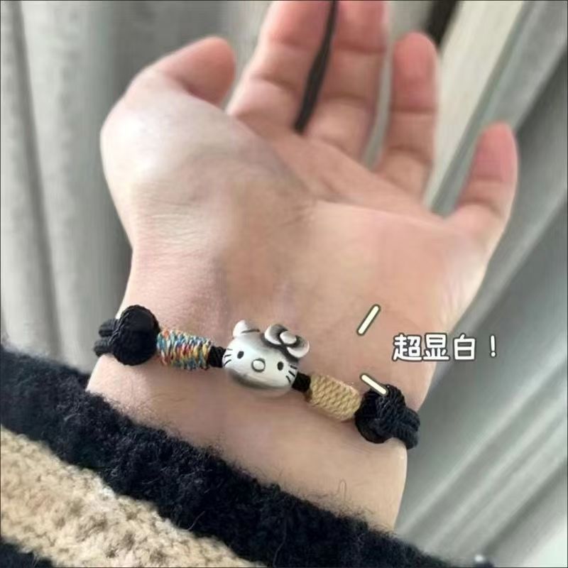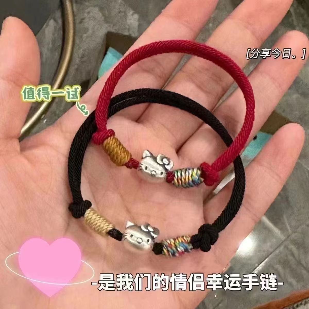 本命年红色手工编织kitty猫手链手绳女手工编织KT猫手绳情侣闺蜜