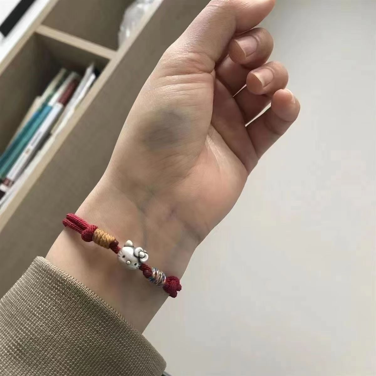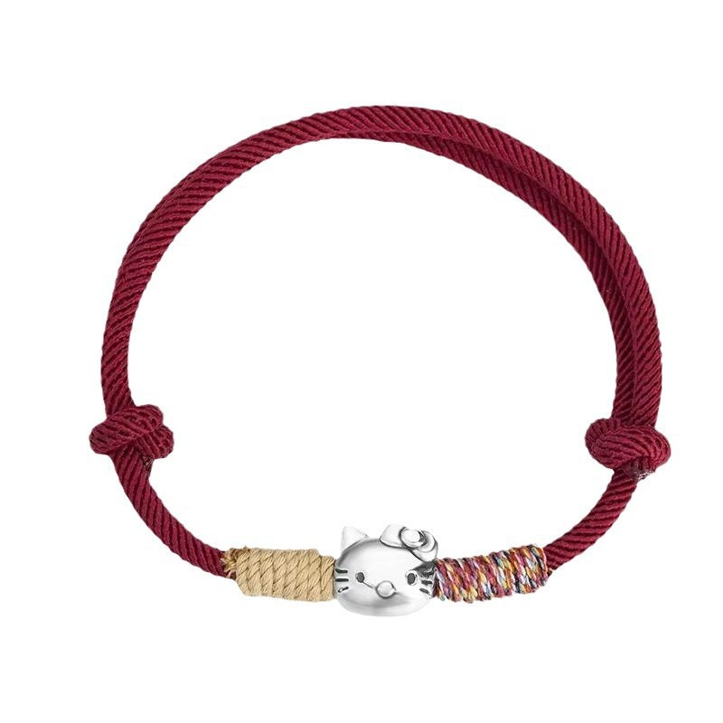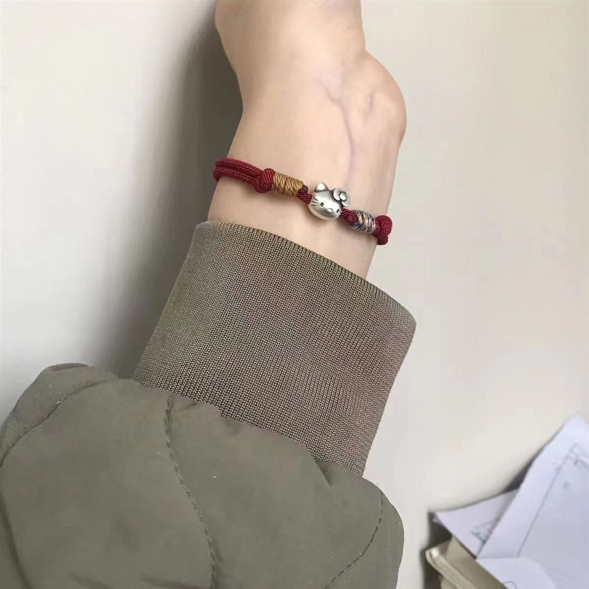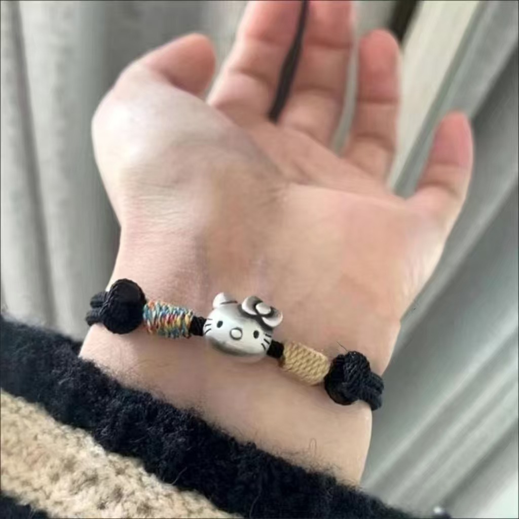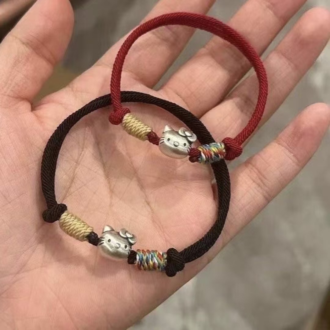 本命年红色手工编织kitty猫手链手绳女手工编织KT猫手绳情侣闺蜜