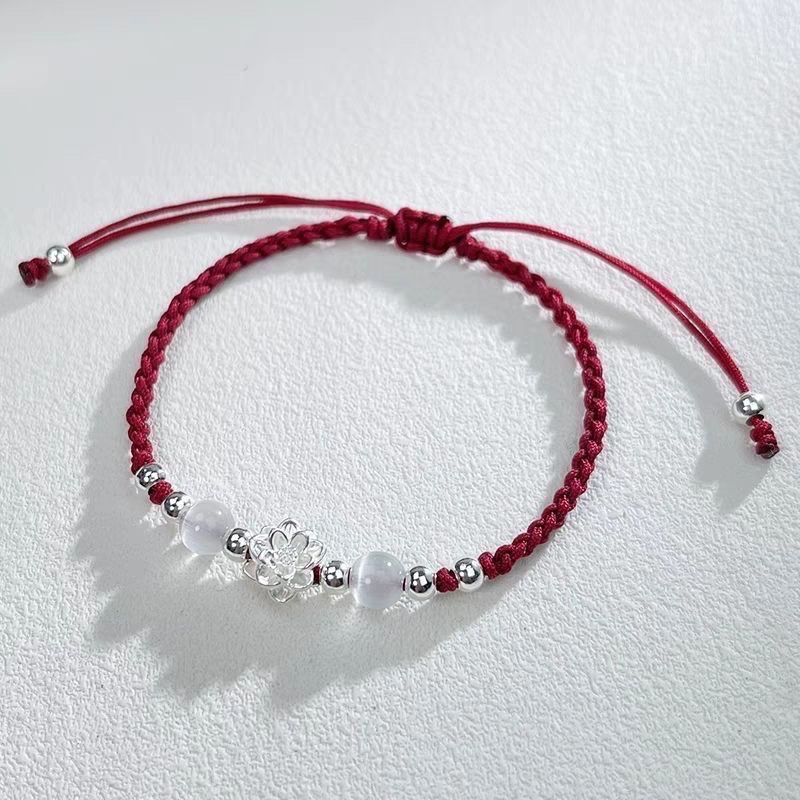 新中式莲花编制手链女古风手工编织可调节手绳国风手饰情侣款
