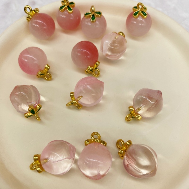 新款水晶桃子吊坠水蜜桃小滴溜配饰手链手串diy饰品配件挂坠材料