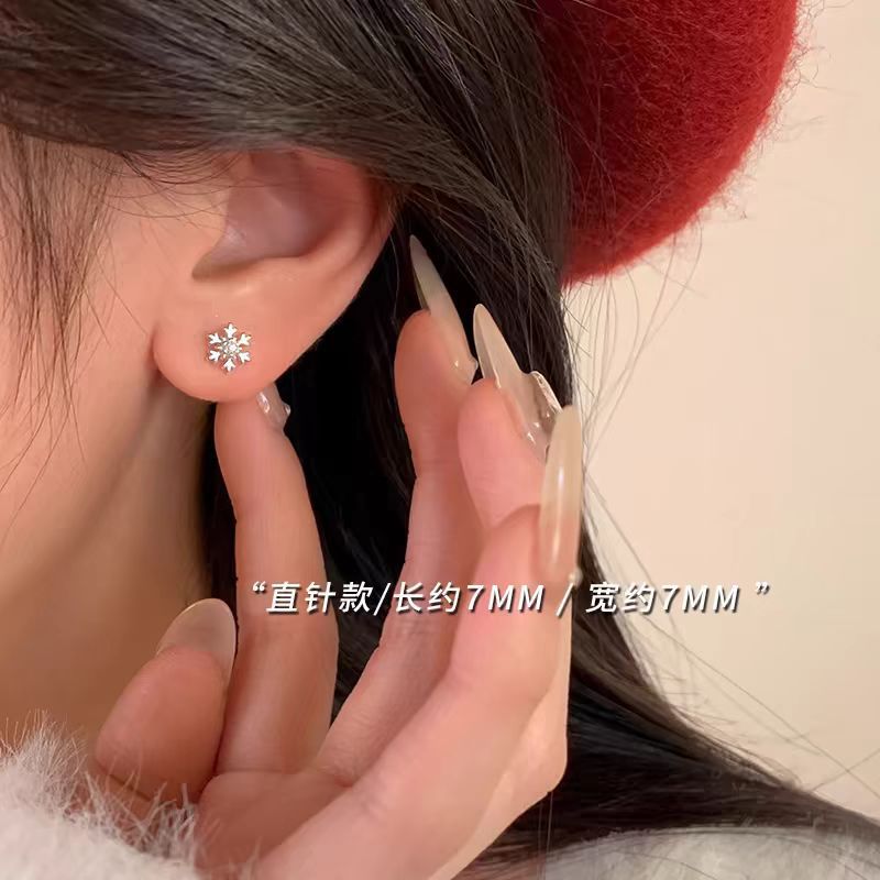 925银针雪花耳钉女养耳洞耳环2025年新款爆款潮睡觉免摘耳饰女