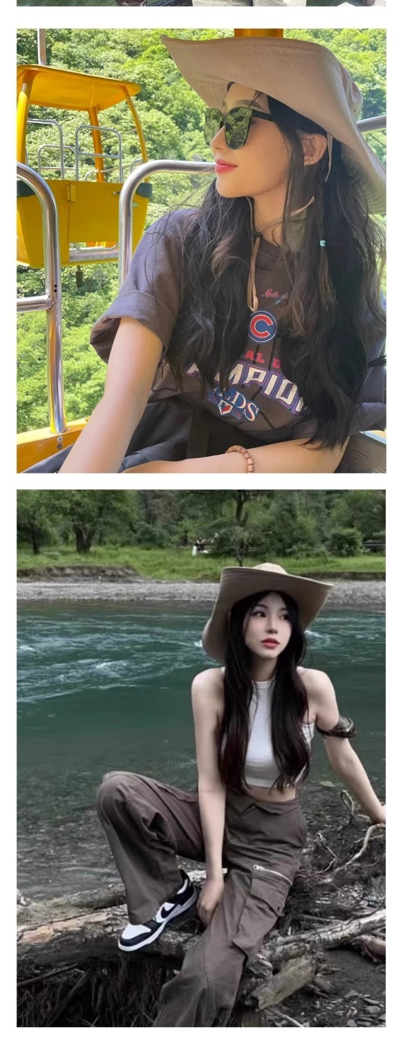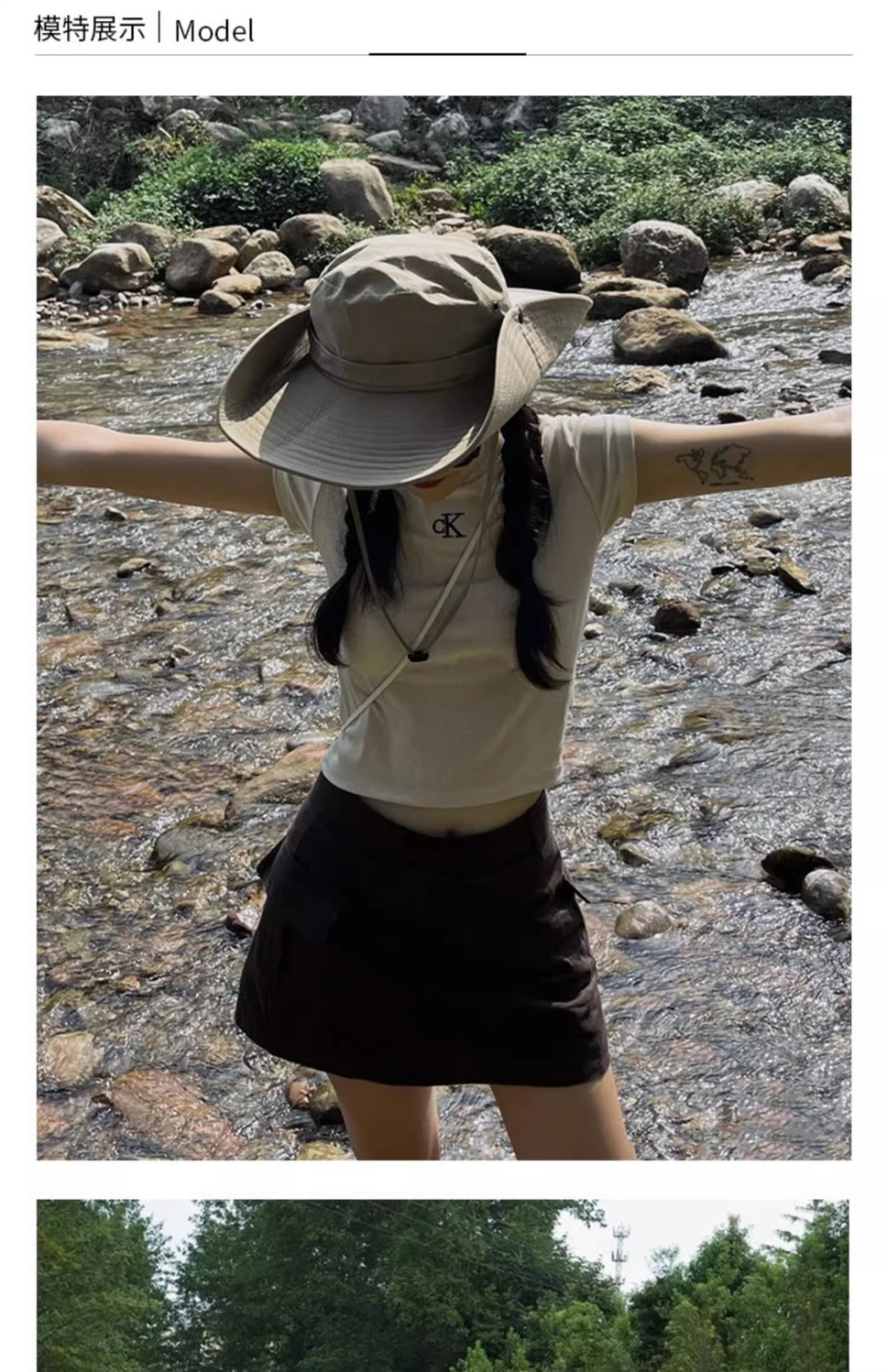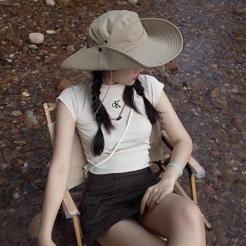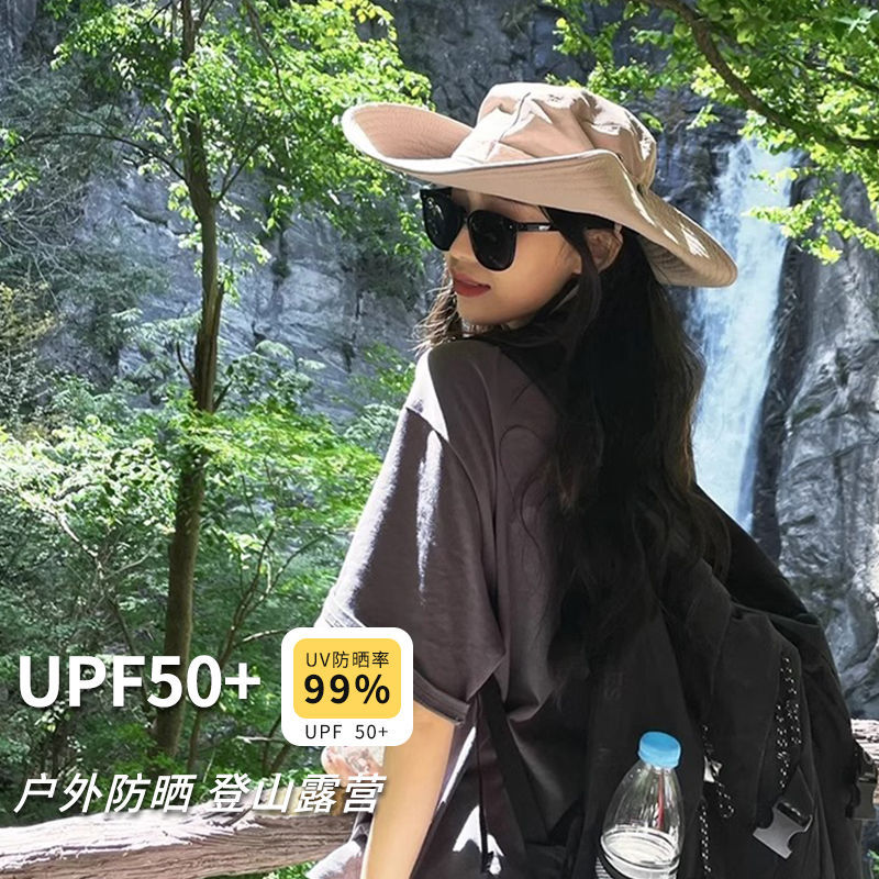 登山帽女夏季渔夫帽大檐钓鱼帽子男防晒太阳帽徒步户外登山牛仔帽