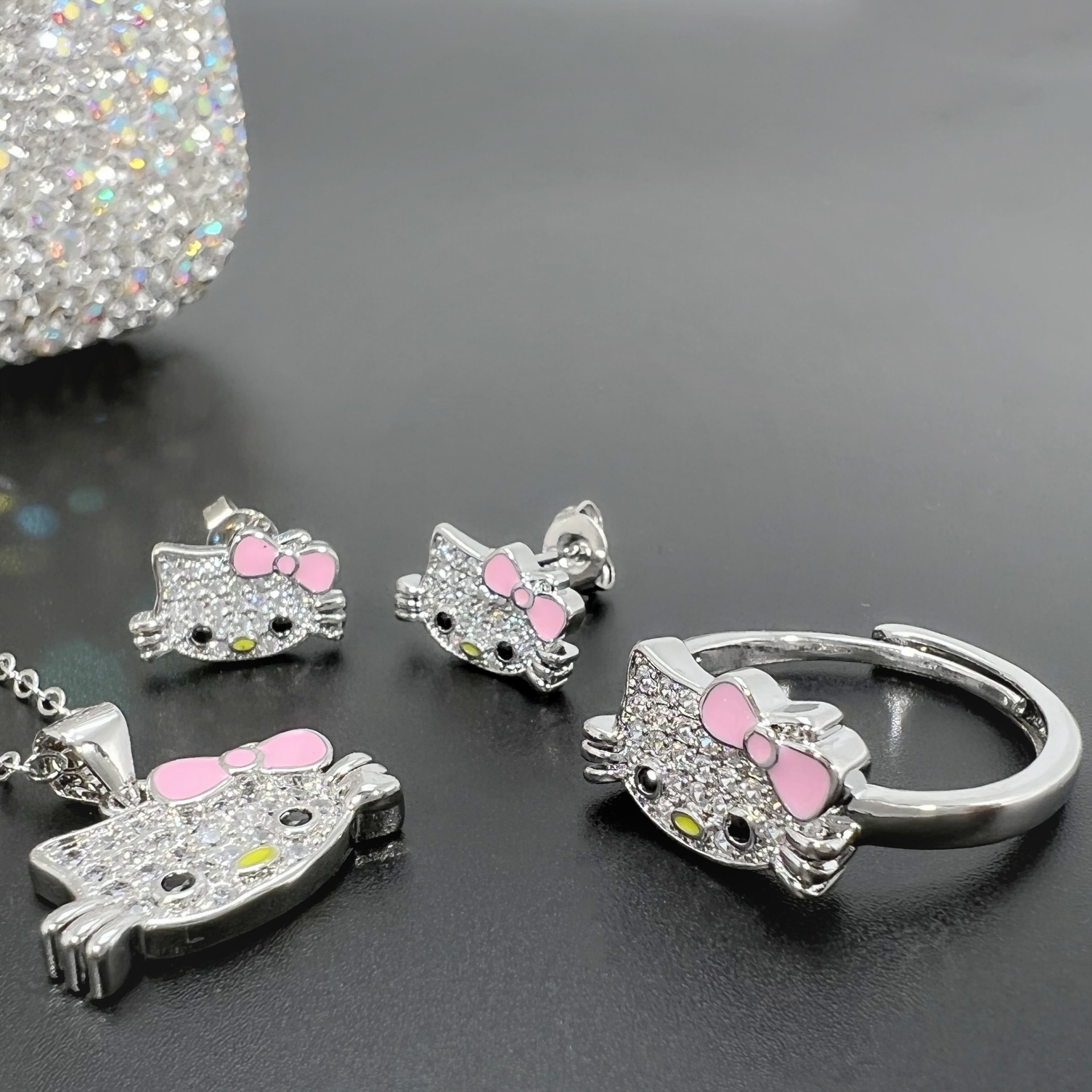三件套kitty猫项链开口戒指女学生闺蜜 可爱萌凯蒂喵项链戒指卡通
