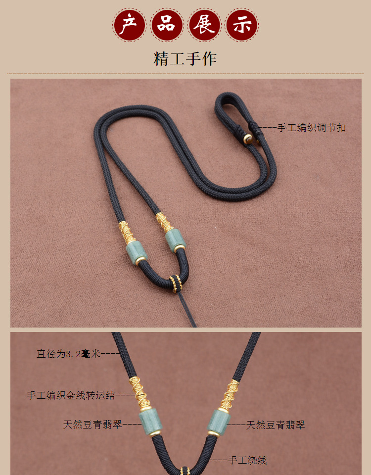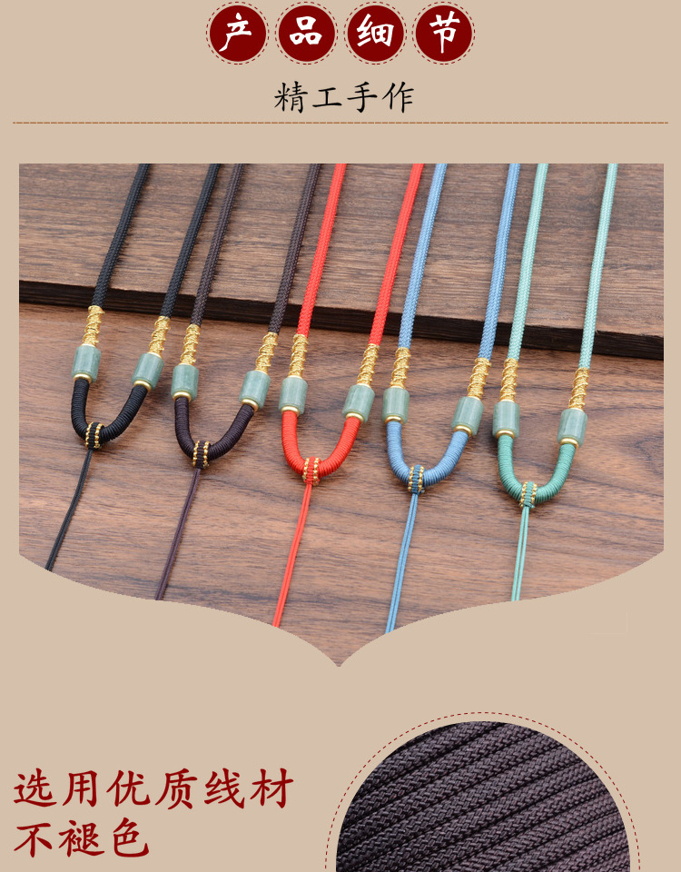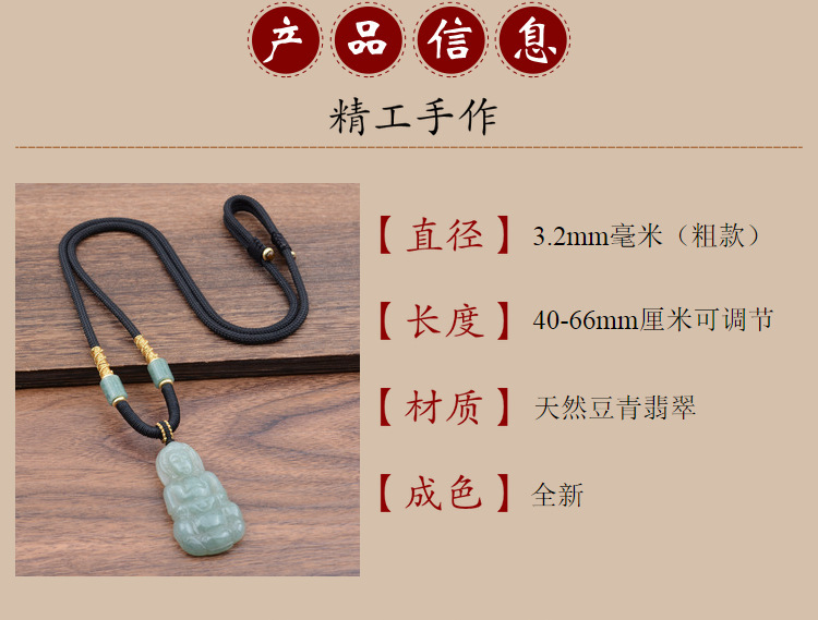平安扣玉佛高端挂绳玉坠玉佩翡翠吊坠挂坠绳男士项链挂件绳子粗款