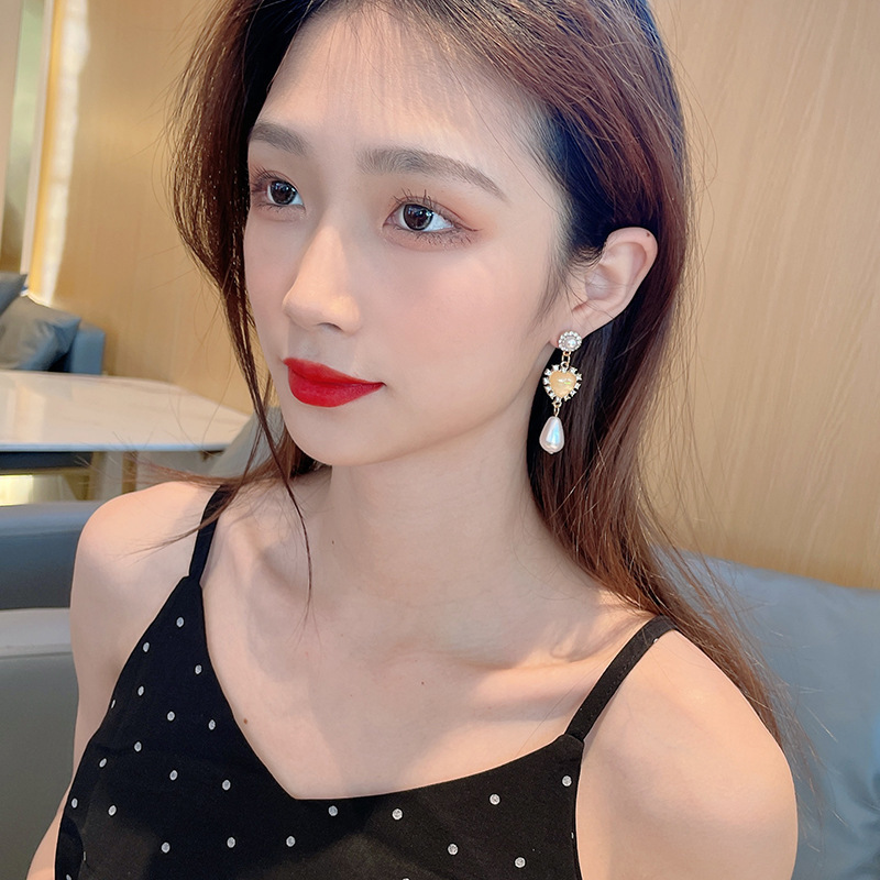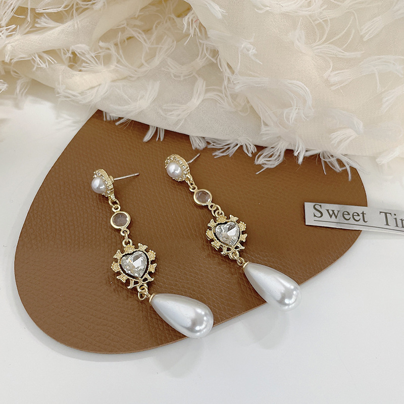 法式新款巴洛克爱心水滴S925银针 镶钻流苏设计感百搭 耳钉耳饰女