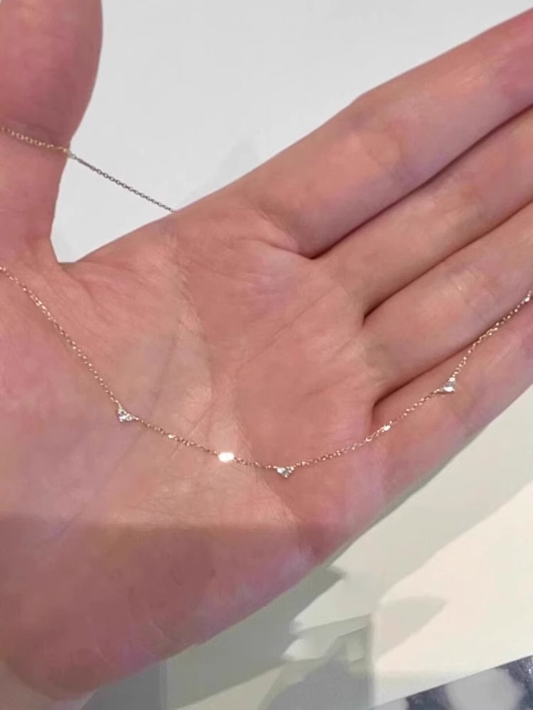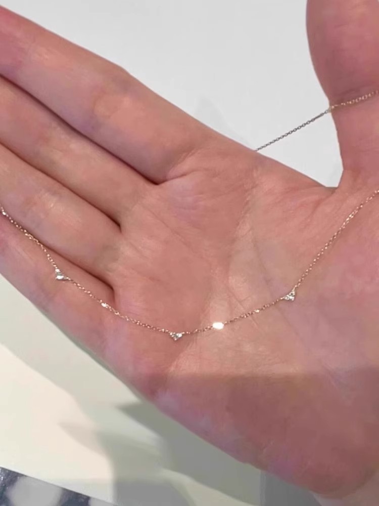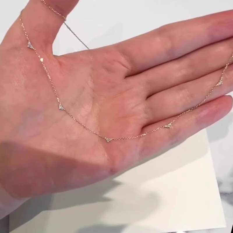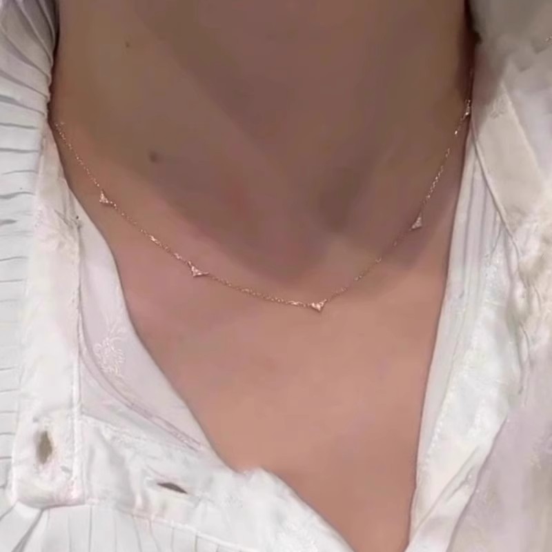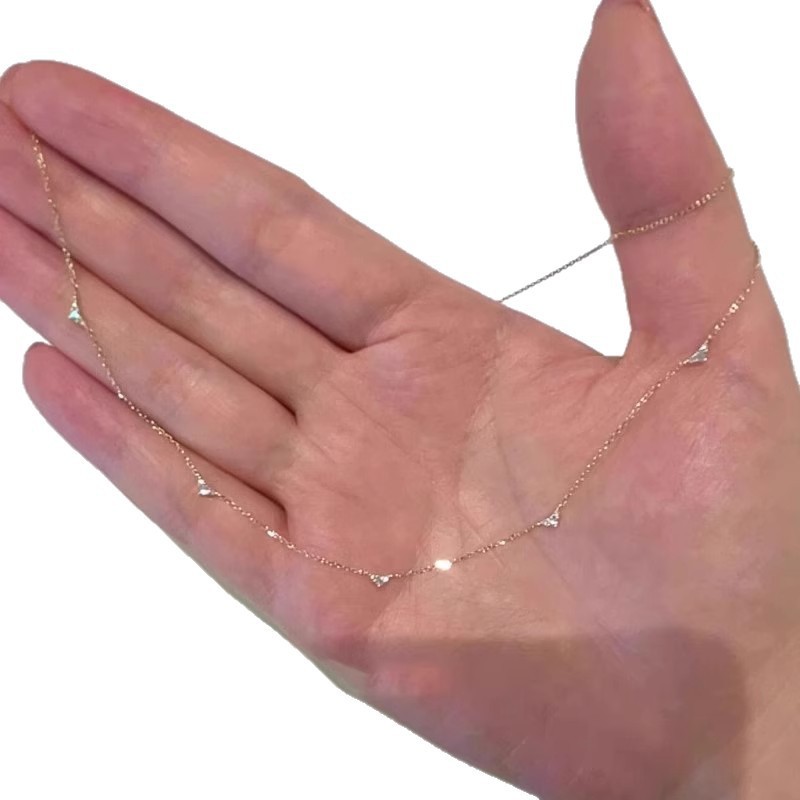 极细闪钻爱心项链女新款高级感轻奢颈链小众迷你三角形锆石锁骨链