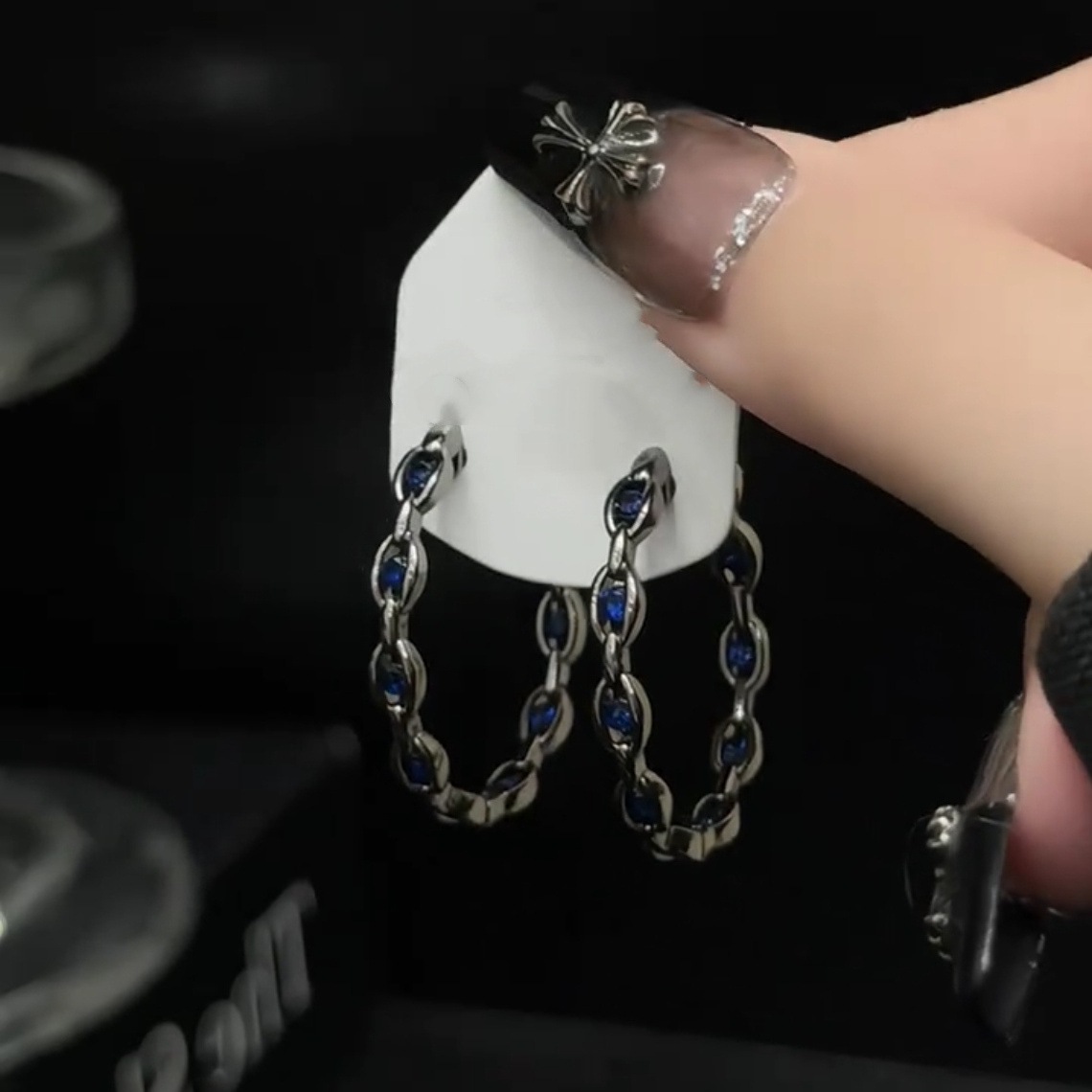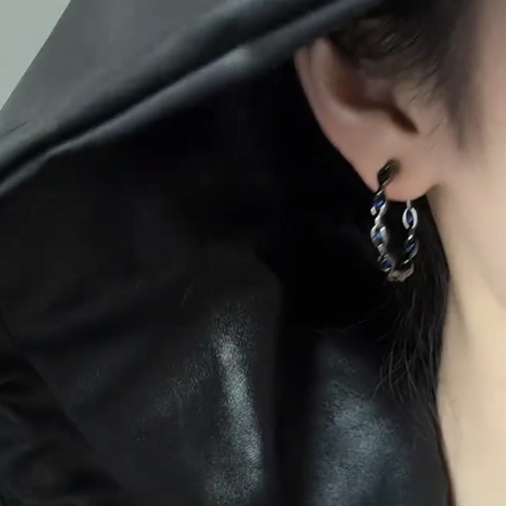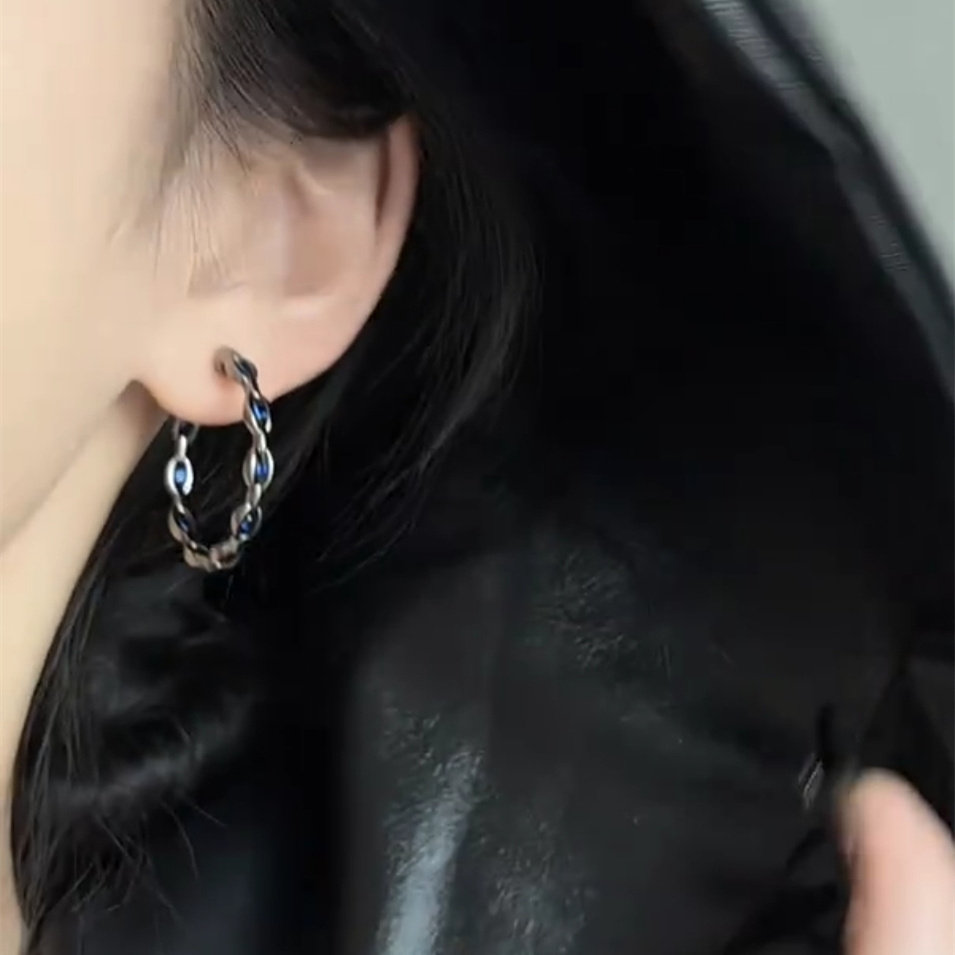 欧美暗黑风日韩黑色甜酷耳圈耳环女时尚百搭高蓝冷淡风耳坠