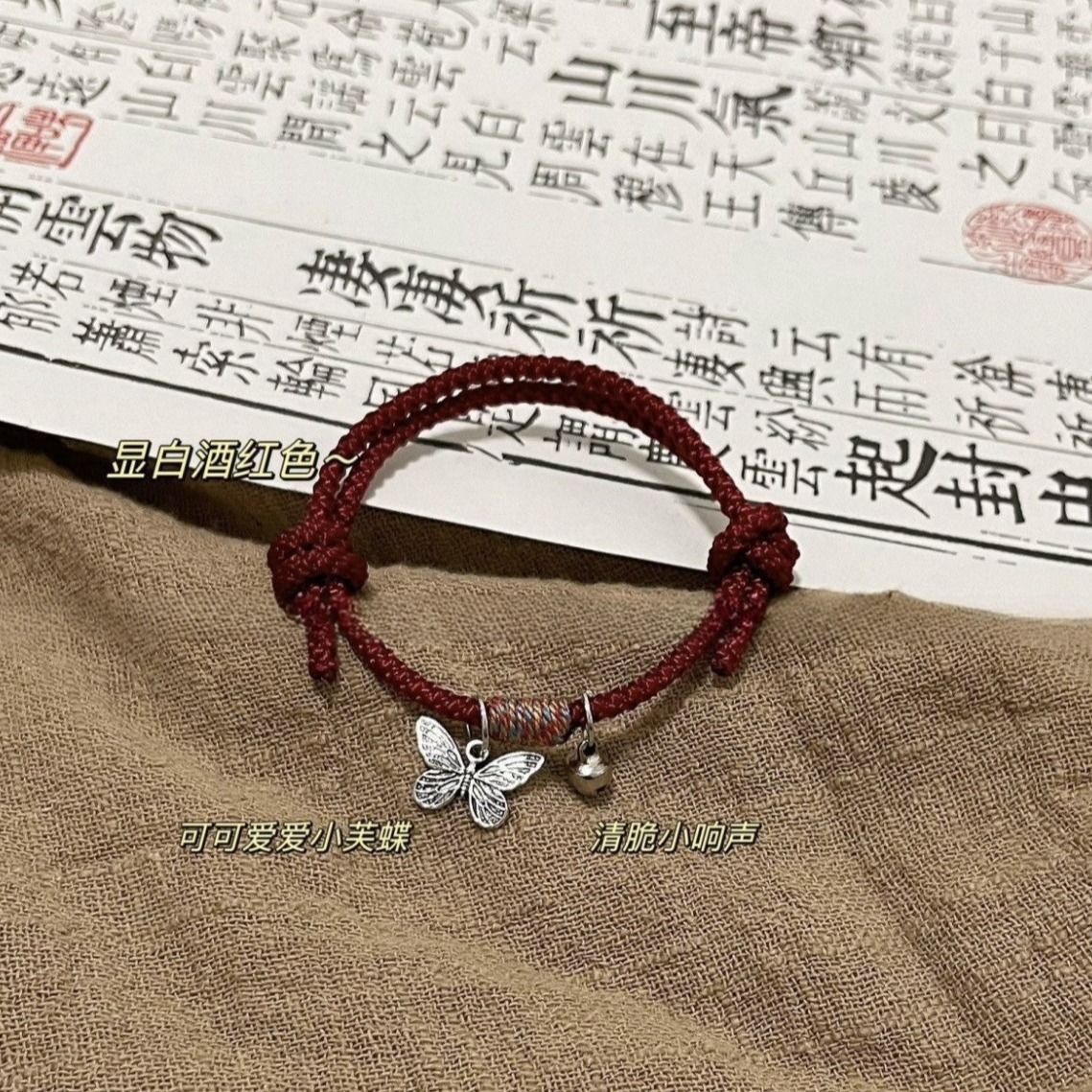 【清仓清完下架】新中式ins铃铛蝴蝶手绳红绳简约学生送闺蜜情侣