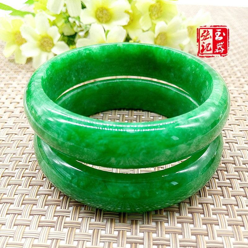 翡翠手镯 帝王绿满绿翡翠铁龙生干青翡翠手镯 生日礼物礼品