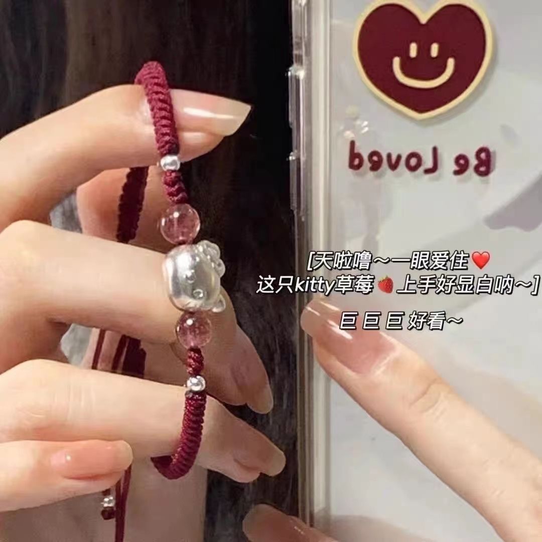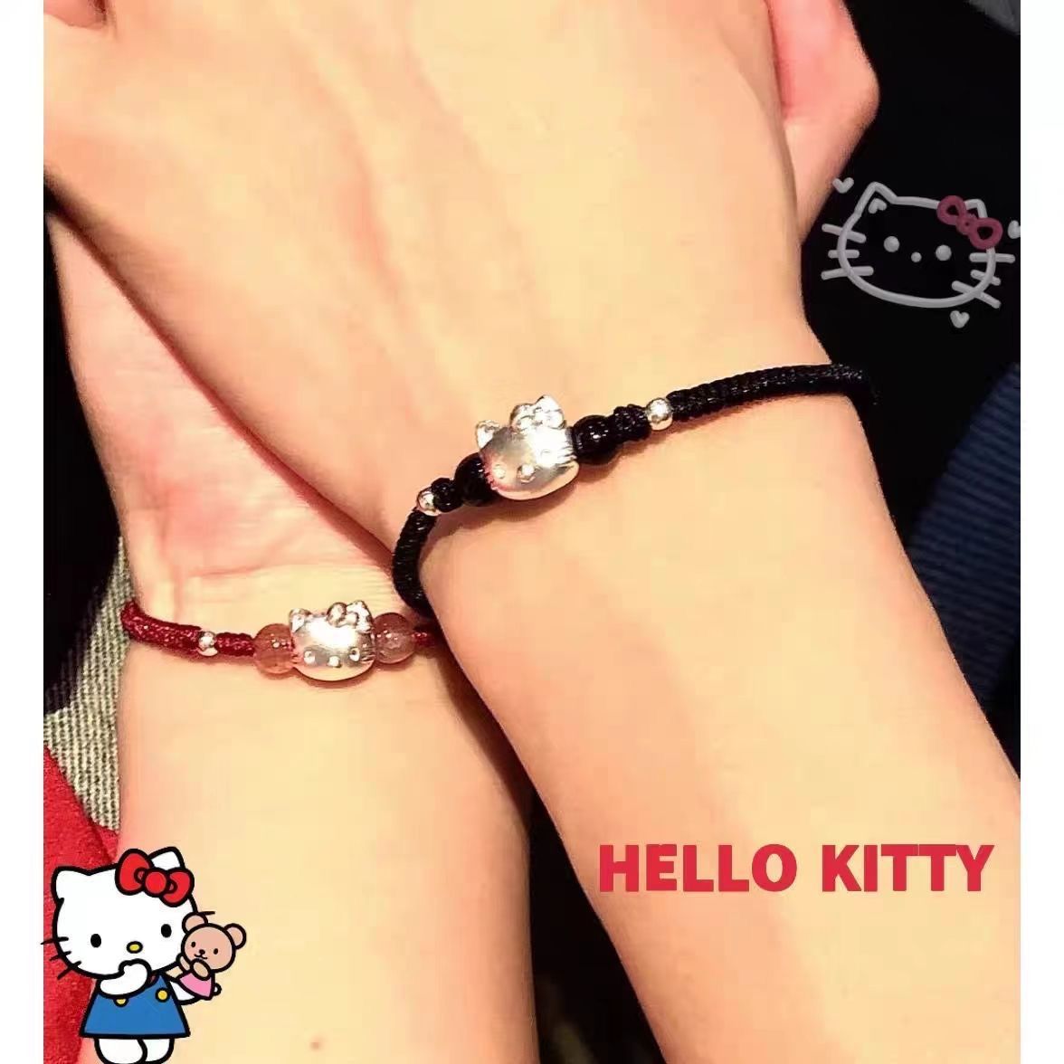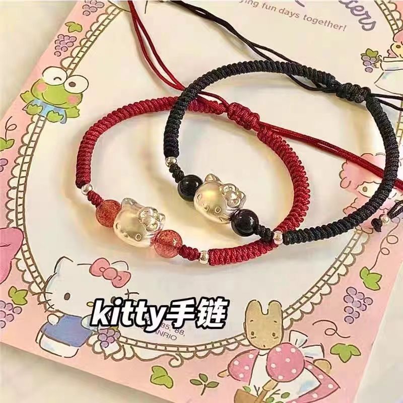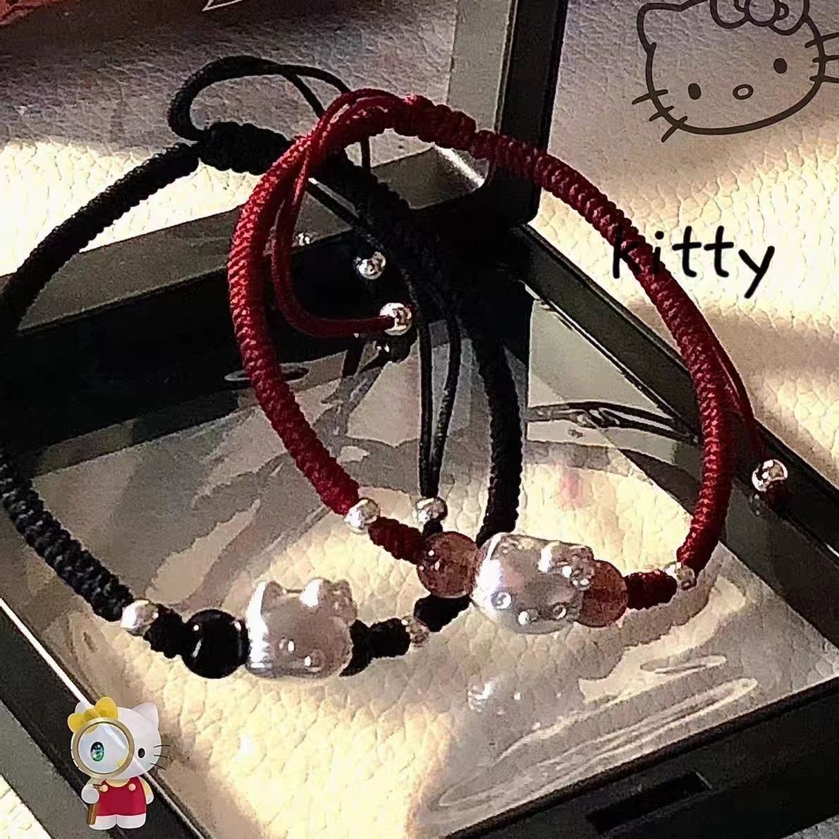 hellokitty情侣手链女可爱卡通宽松手工编织手绳送男友送女友礼