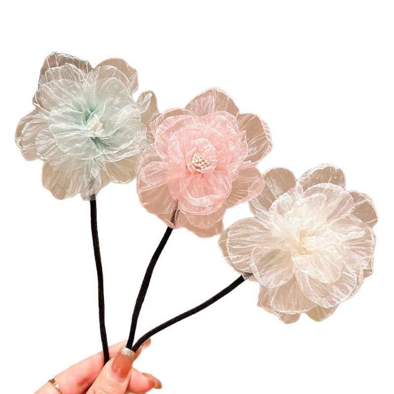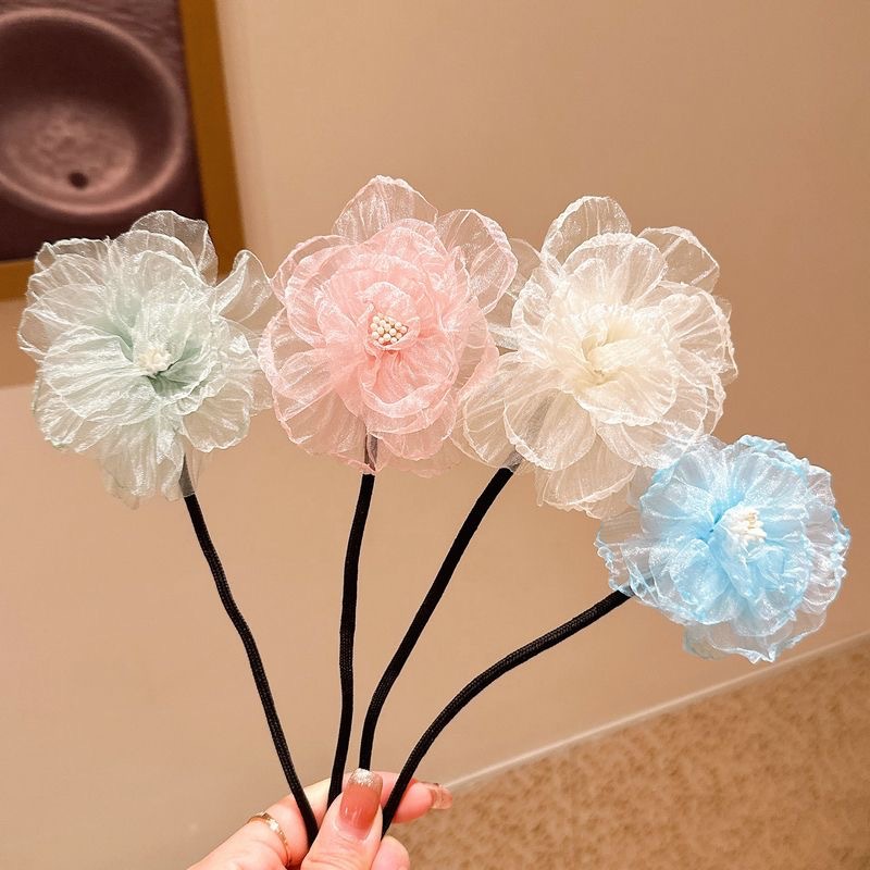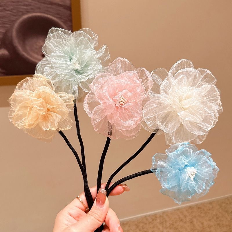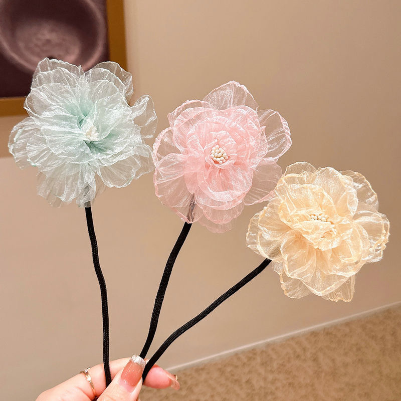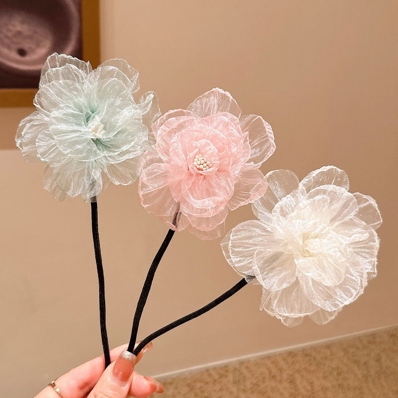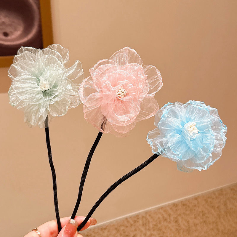儿童盘发杆懒人丸子头神器女童夏花苞头小女孩可爱后脑勺花朵头饰